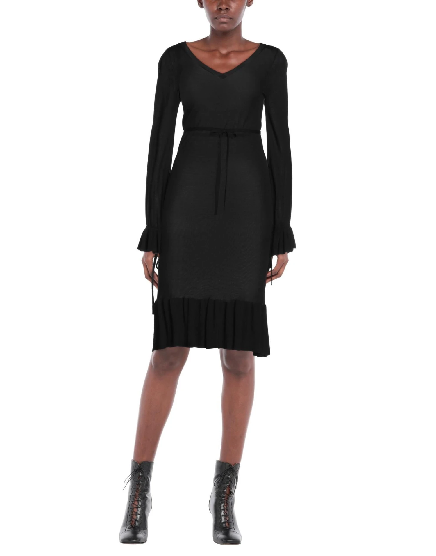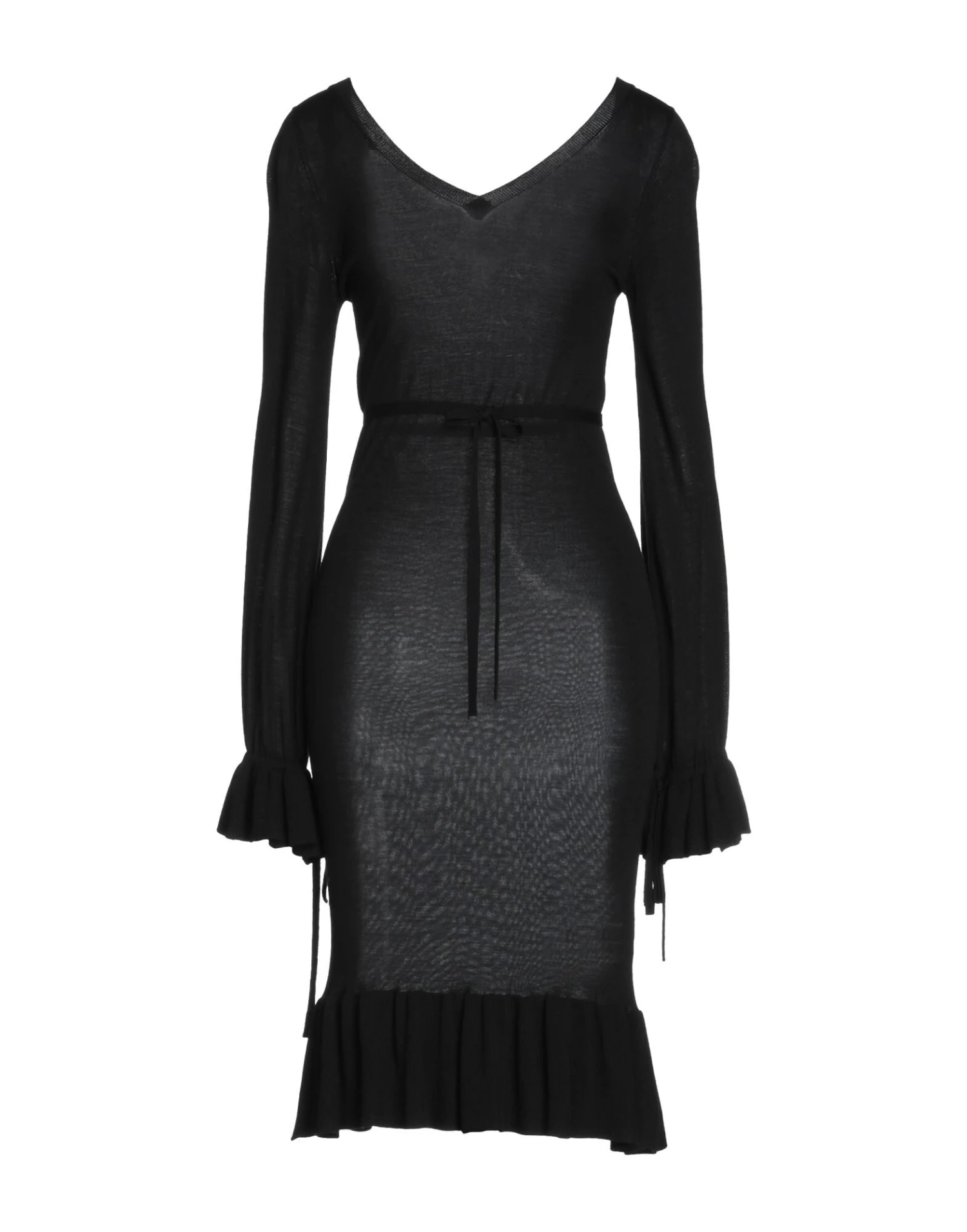 lavorato a maglia, maglia leggera, senza applicazioni, tinta unita, collo a v, maniche lunghe, senza tasche, interno sfoderato, modello a tubino