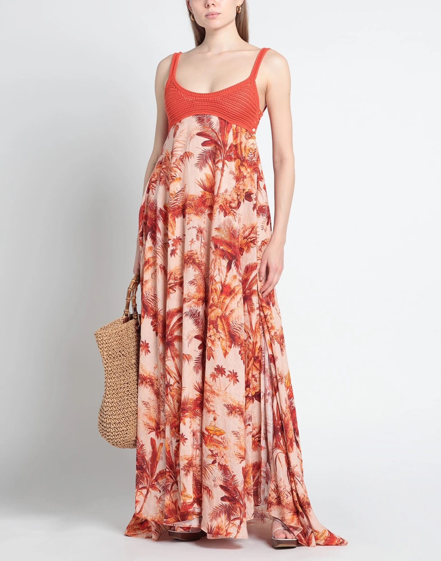 tela, lavorato a maglia, maglia leggera, senza applicazioni, fantasia hawaiana, collo ampio, senza maniche, interno sfoderato, multitasche, vestito