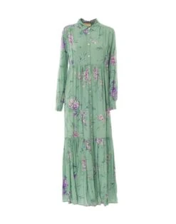 bottoni, collo a polo, fantasia floreale, maniche a campana, modello a trapezio, senza applicazioni, senza tasche, maniche lunghe