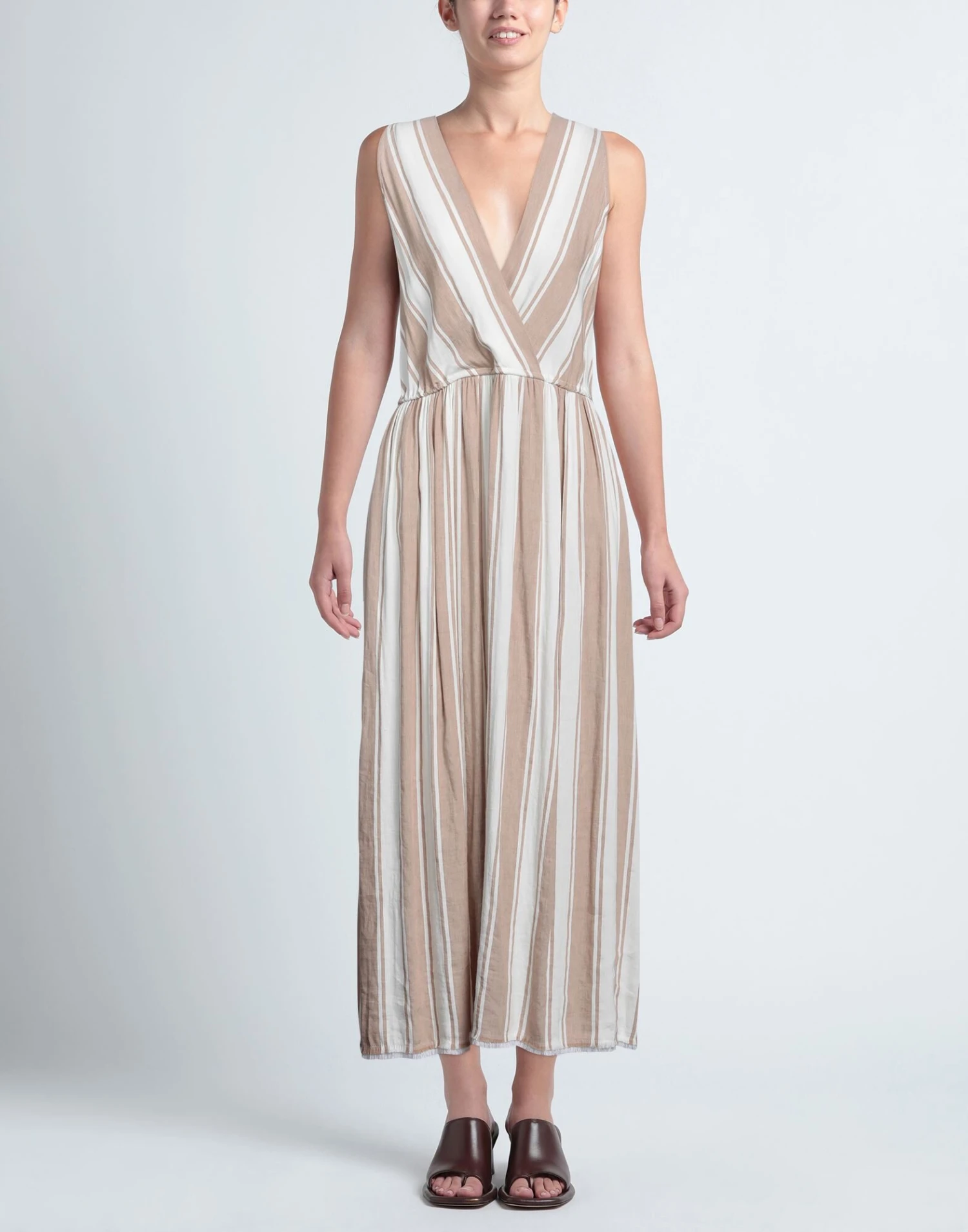tela, senza applicazioni, a righe, collo a v, senza maniche, interno sfoderato, senza tasche, modello a trapezio