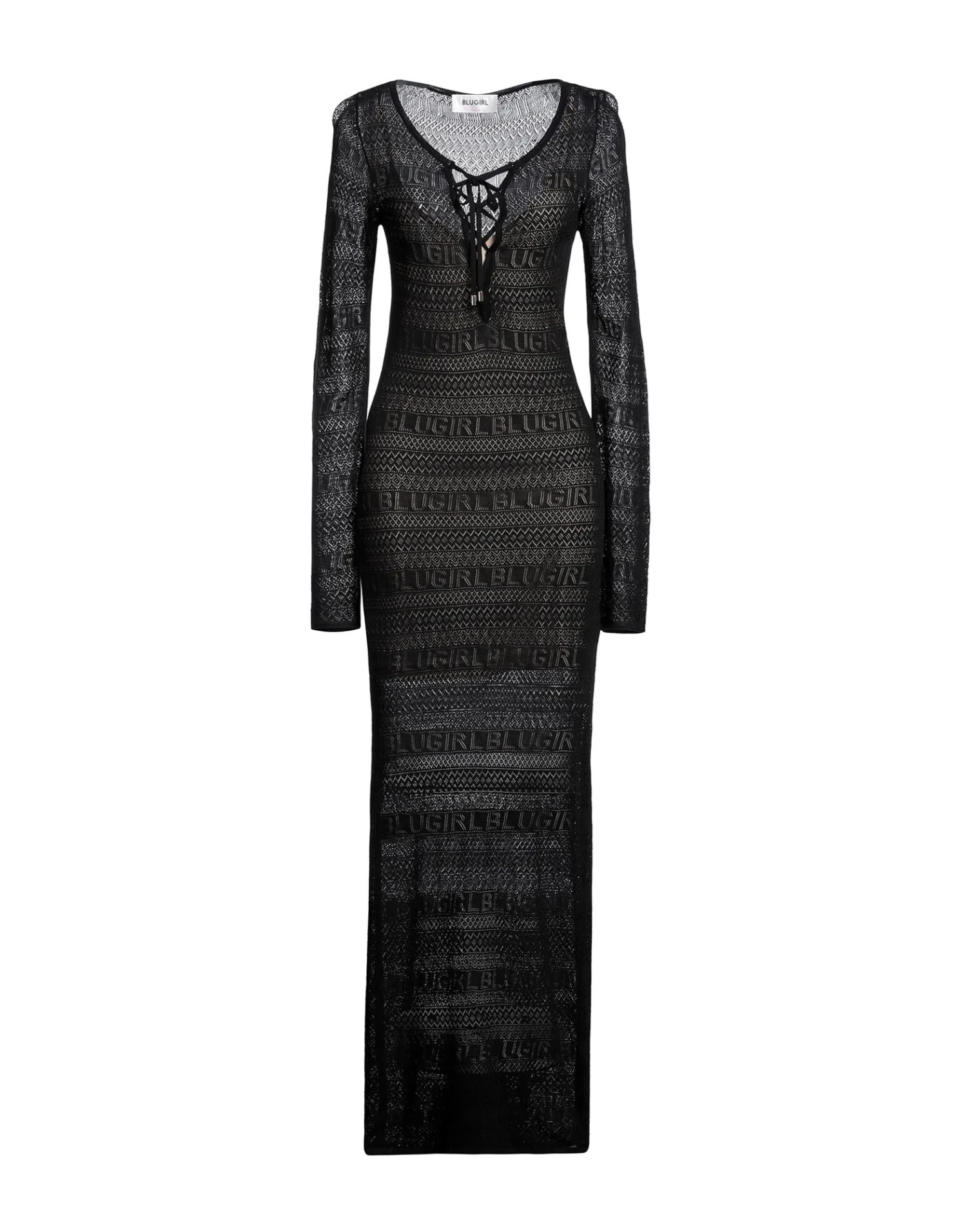 lavorato a maglia, maglia leggera, brand logo, tinta unita, collo con fiocco, maniche lunghe, sottoveste interna, senza tasche, fondo con spacchetti laterali, elasticizzato, modello a tubino