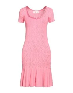 lavorato a maglia, maglia leggera, applicazioni a contrasto, fiocco, tinta unita, collo tondo, maniche corte, interno sfoderato, senza tasche, modello a trapezio