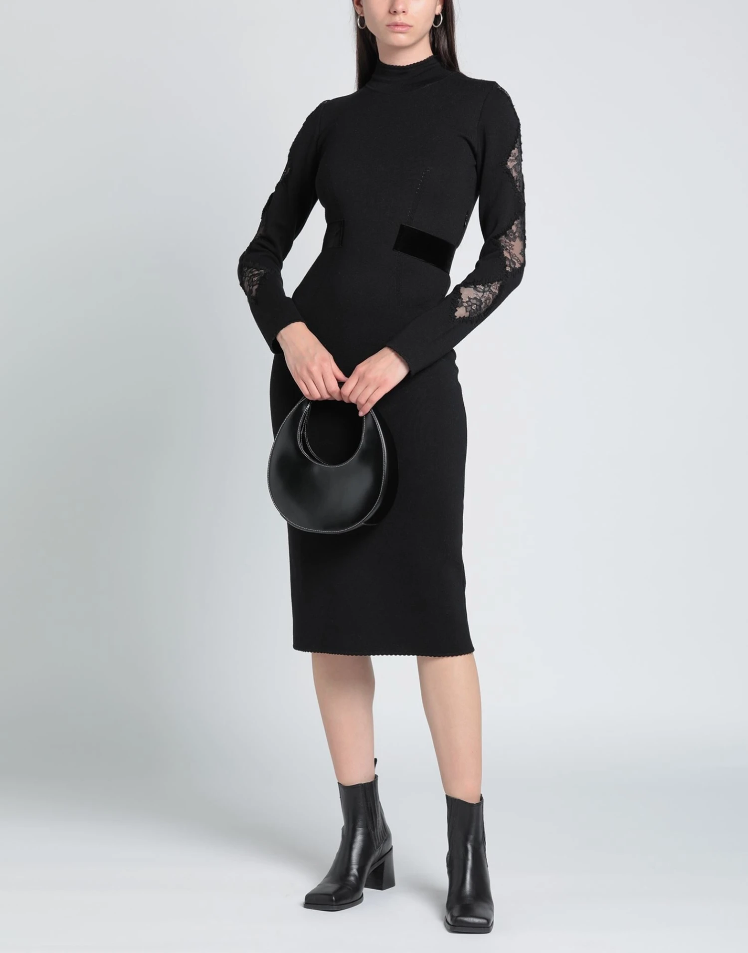 Lavorato a maglia, Collo alla coreana, Maniche lunghe, Tinta unita, Cintura