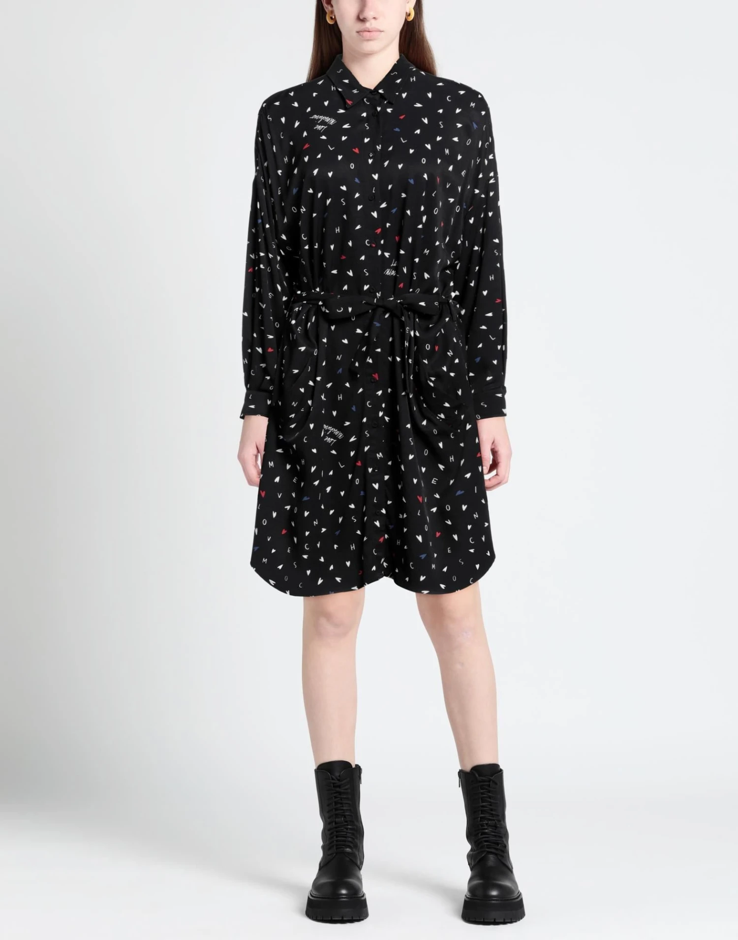 twill, cintura, fantasia multicolore, collo classico, maniche lunghe, bottoni, modello chemisier