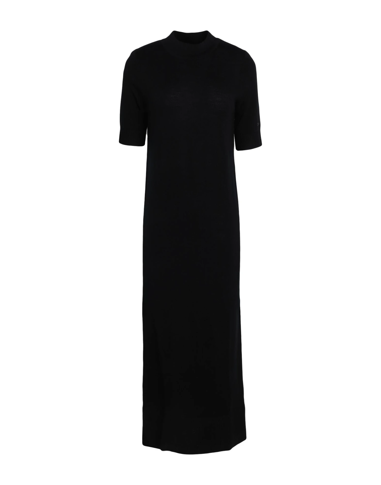 lavorato a maglia, maglia leggera, brand logo, tinta unita, collo alto, maniche corte, interno sfoderato, modello a tubino