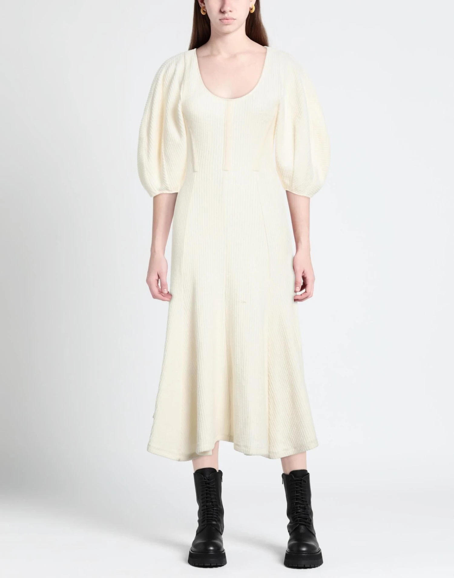 lavorato a maglia, lavorazione a coste, maglia leggera, senza applicazioni, tinta unita, collo ampio, maniche a 3/4, manica a sbuffo, interno sfoderato, senza tasche, vestibilità ampia, modello a trapezio