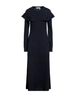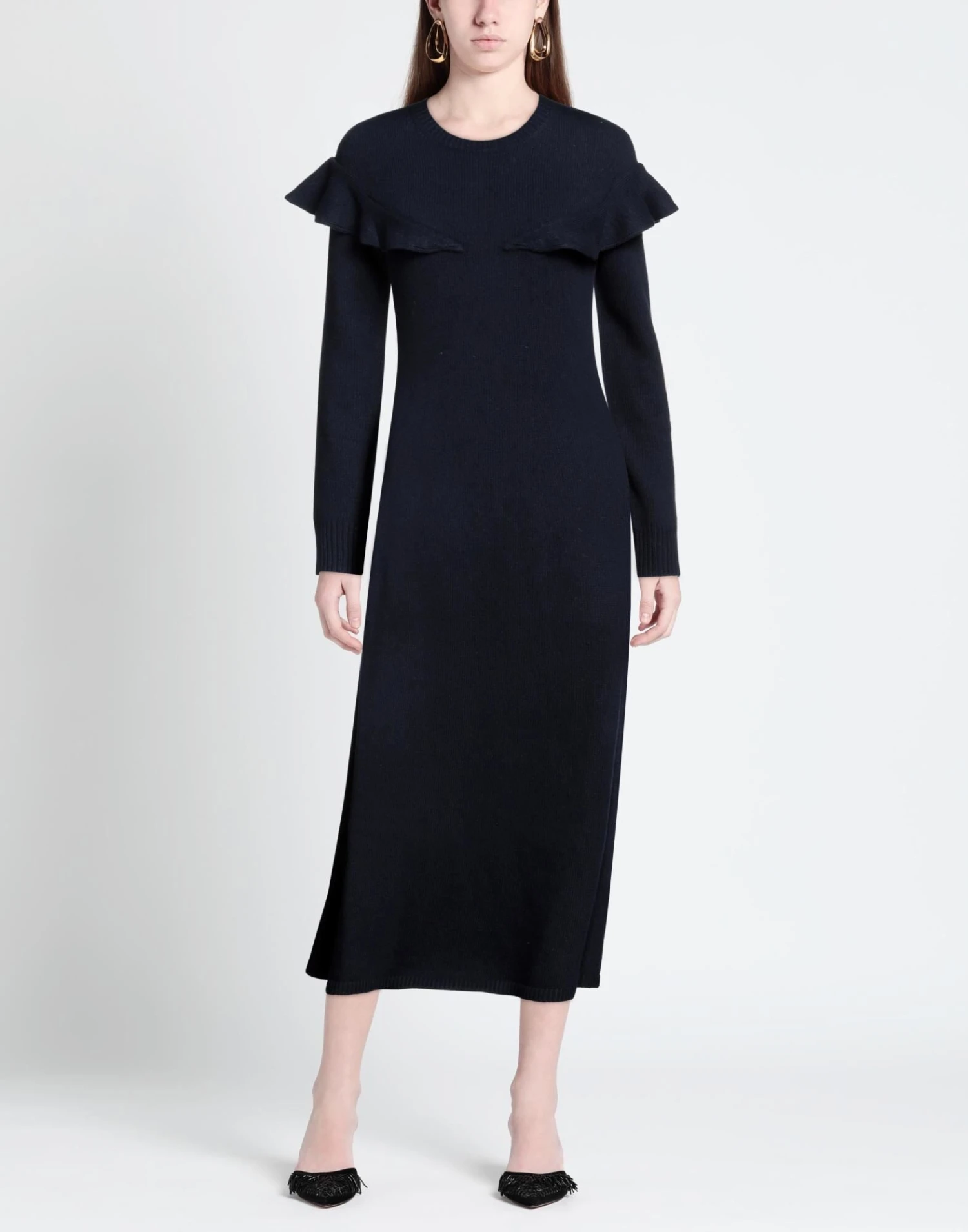 lavorato a maglia, maglia media, ruches, tinta unita, collo tondo, maniche lunghe, interno sfoderato, senza tasche, modello a tubino, vestibilità ampia