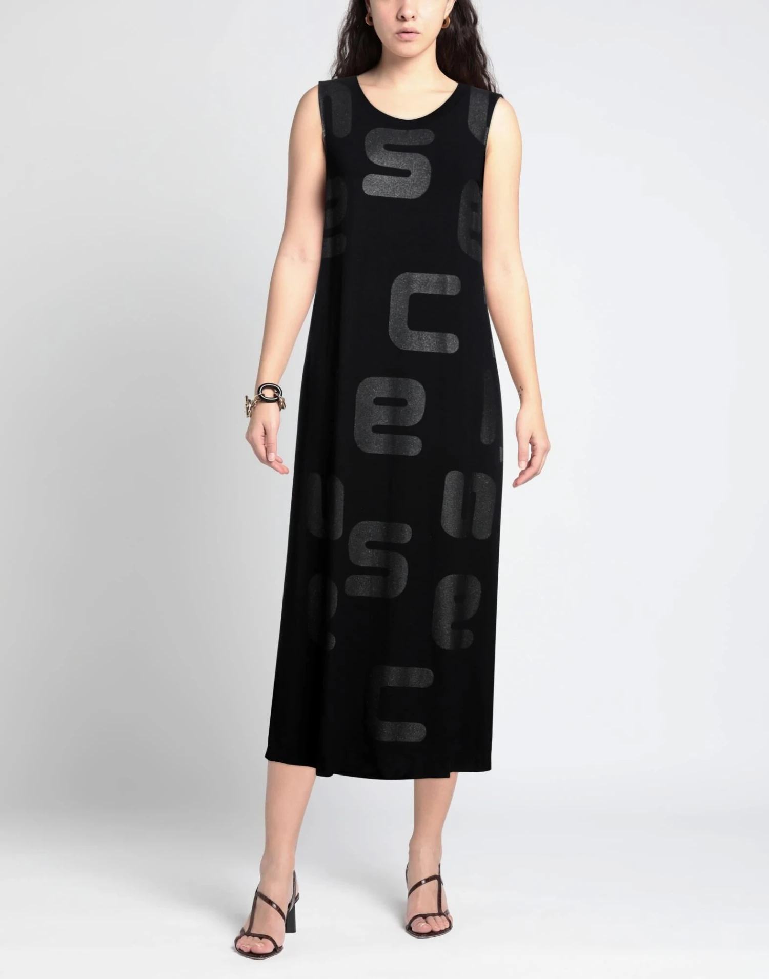 Tinta unita con stampa, Senza maniche, Collo tondo