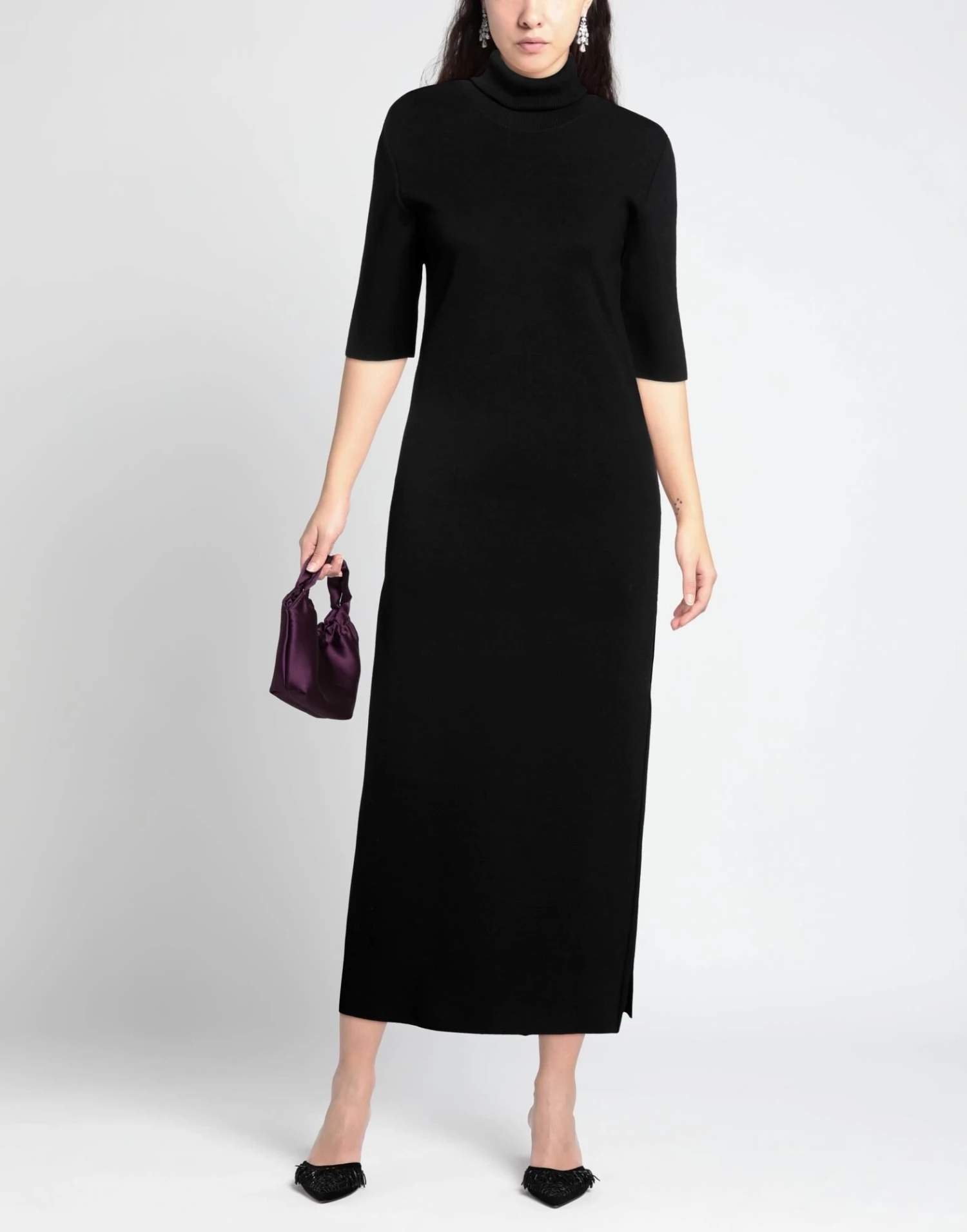 jersey, lavorato a maglia, maglia leggera, senza applicazioni, tinta unita, collo alto, maniche a 3/4, senza tasche, spacco laterale, lavorazione a coste, interno sfoderato, modello a tubino, vestibilità ampia