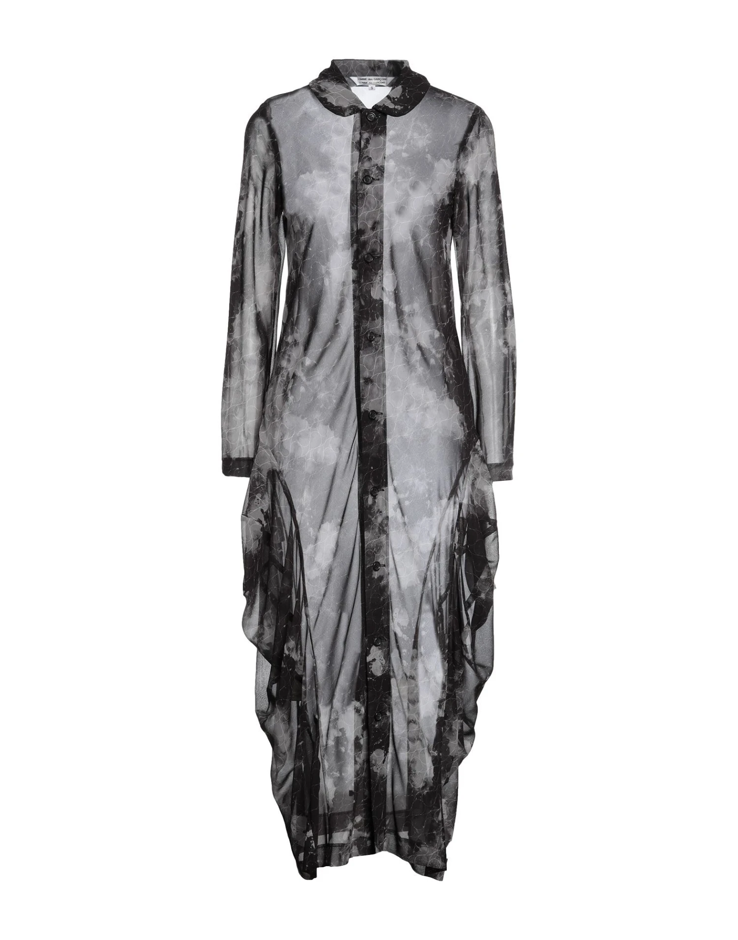 chiffon, ruches, fantasia bicolore, collo claudine, maniche lunghe, senza tasche, chiusura sul fronte, bottoni, interno sfoderato, vestibilità ampia