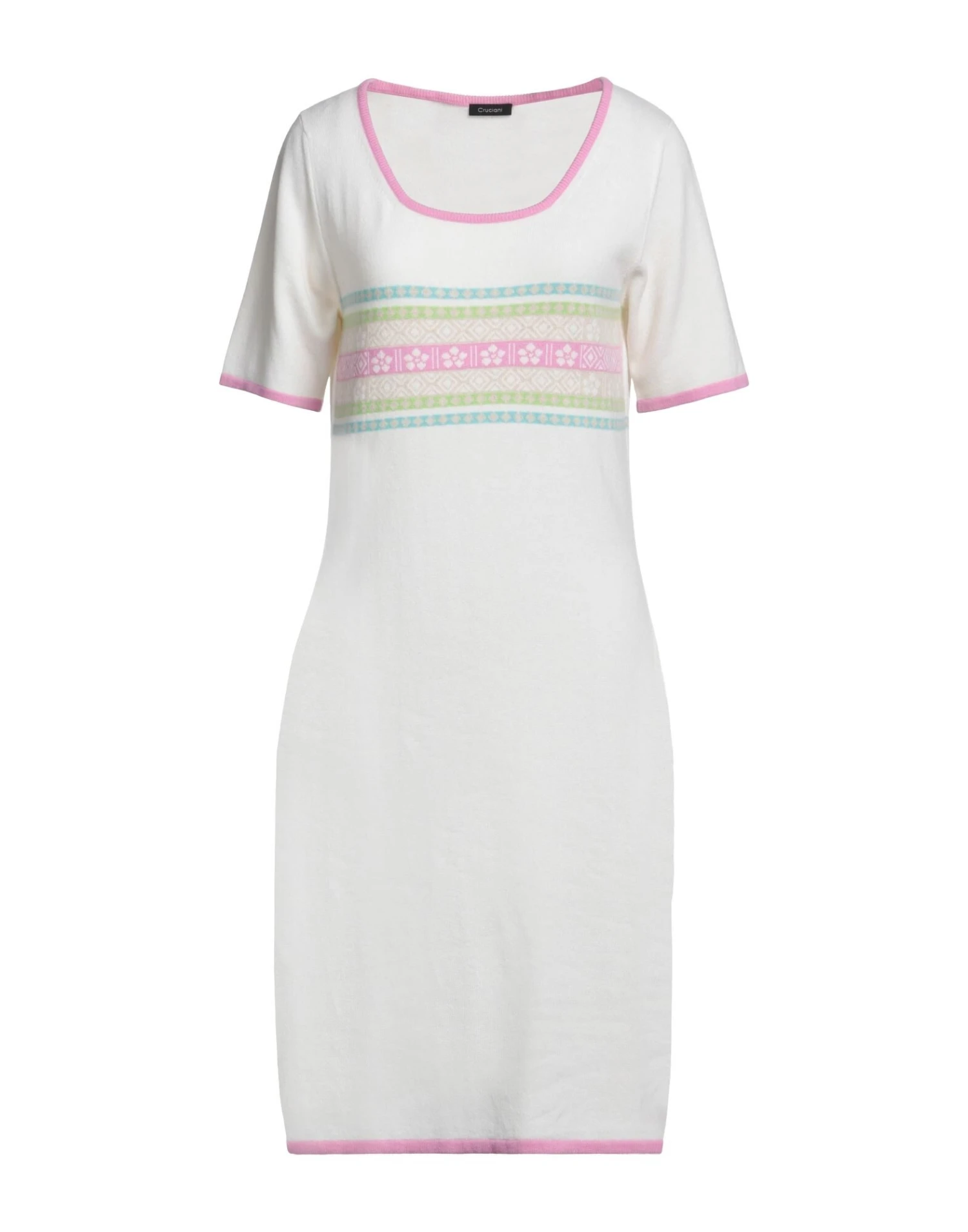 lavorato a maglia, senza applicazioni, fantasia multicolore, collo tondo, maniche corte, modello a tubino