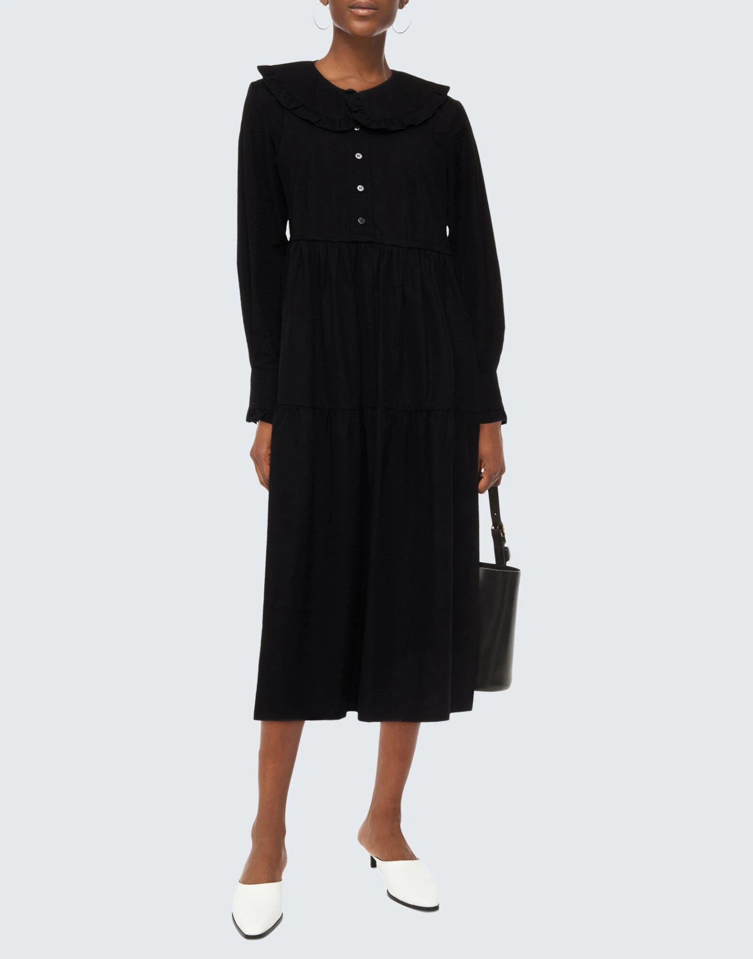 tela, senza applicazioni, tinta unita, collo ampio, maniche lunghe, interno sfoderato, bottoni, senza tasche, modello chemisier
