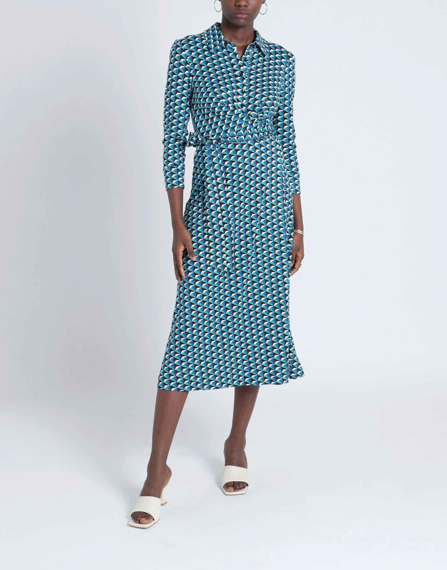 Jersey, Collo Classico, Fantasia geometrica, Bottoni, Maniche lunghe, Lacci