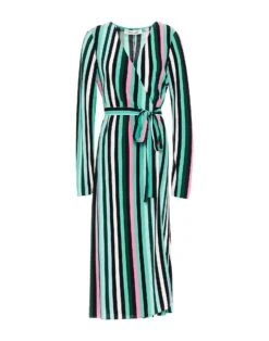 tela, senza applicazioni, a righe, collo con scollatura profonda, maniche lunghe, interno sfoderato, chiusura con laccetti, senza tasche, modello chemisier