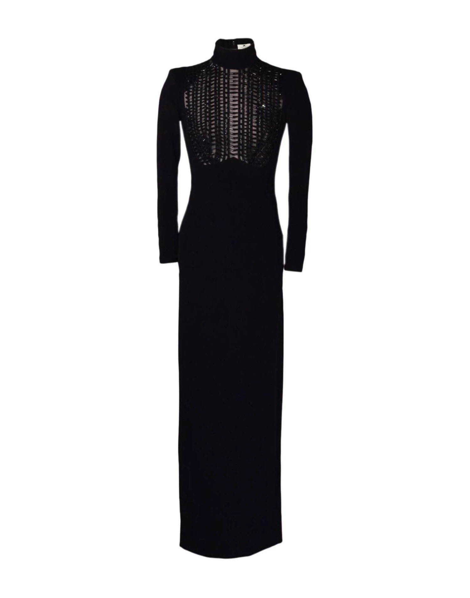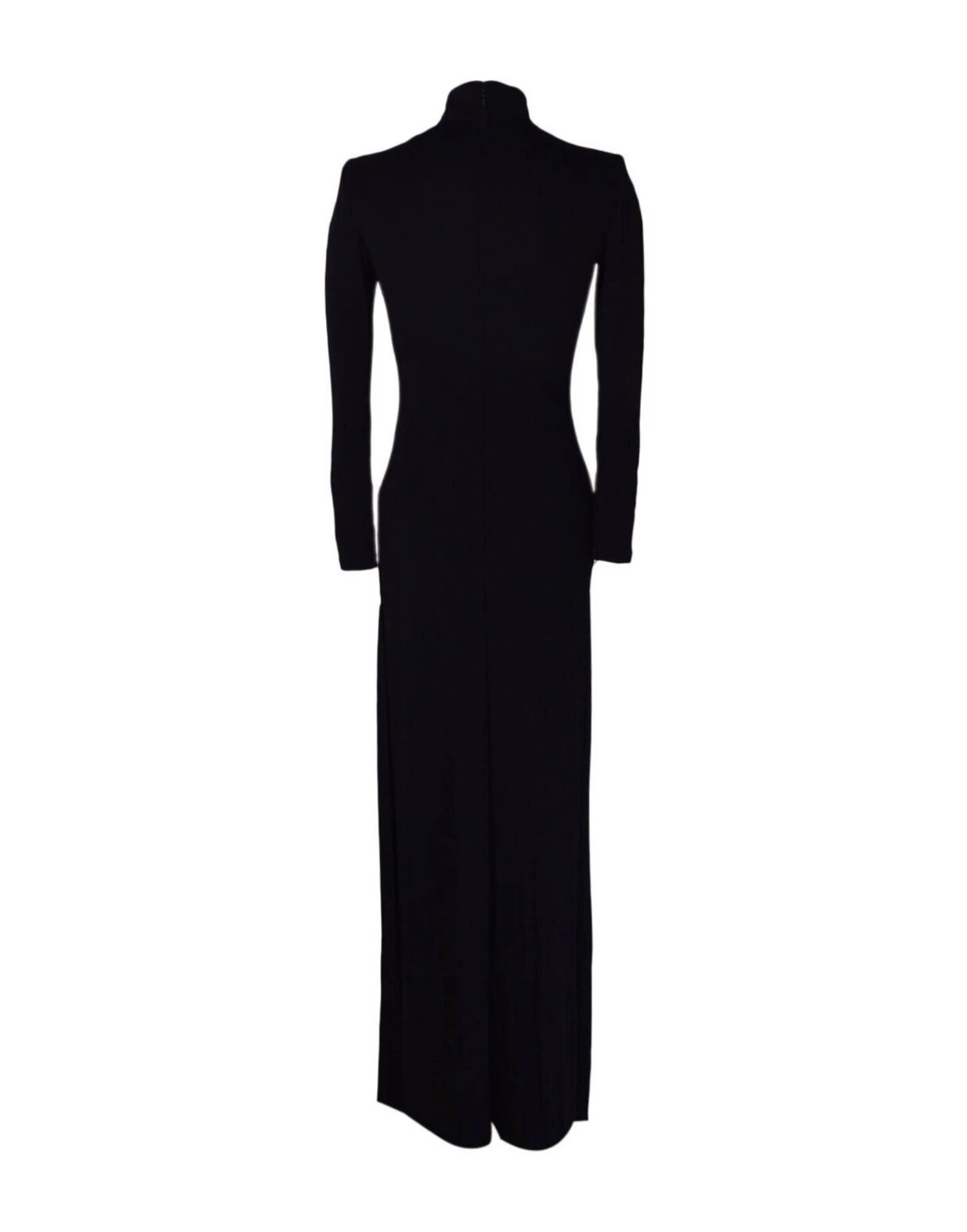 Abito lungo in jersey con spalline Collo alto Plastron ricamato sul petto Chiusura posteriore con zip a scomparsa