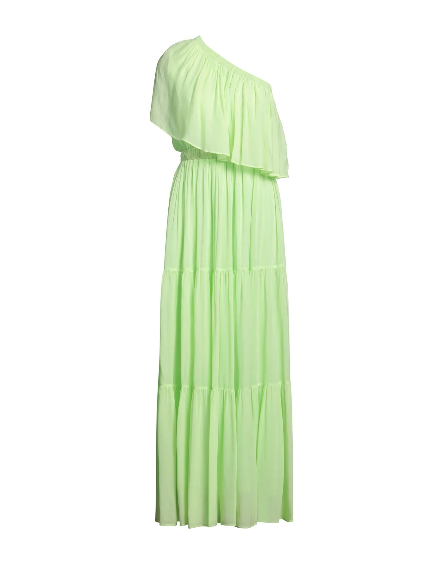 crêpe, arricciature, tinta unita, collo ampio, monospalla, interno foderato, senza tasche, modello stile impero
