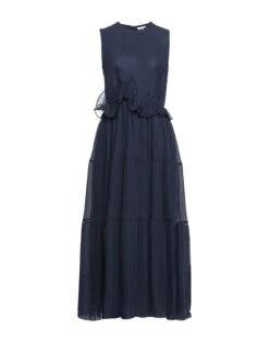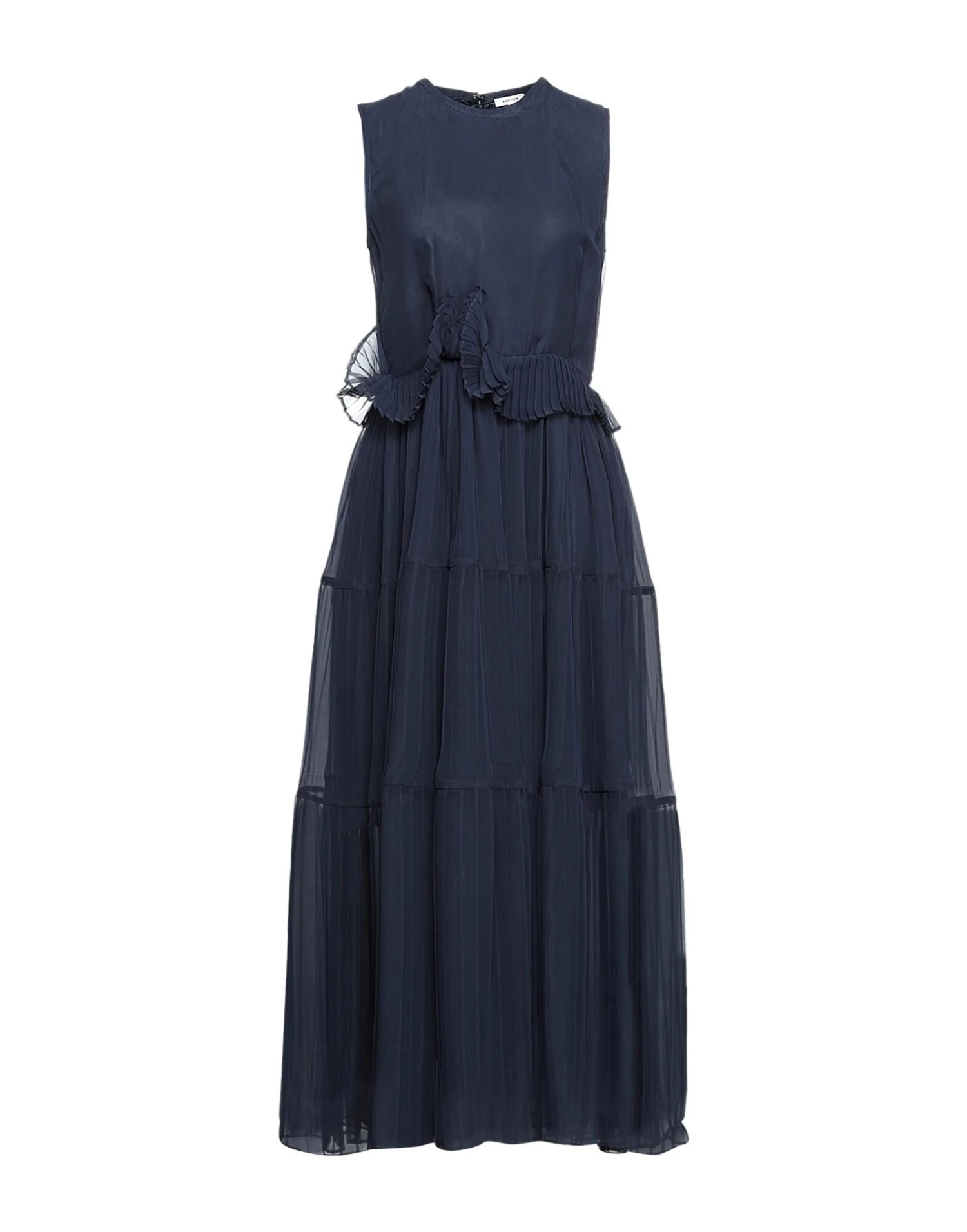crêpe, pieghe, tinta unita, collo tondo, senza maniche, interno foderato, gancetti, zip, senza tasche