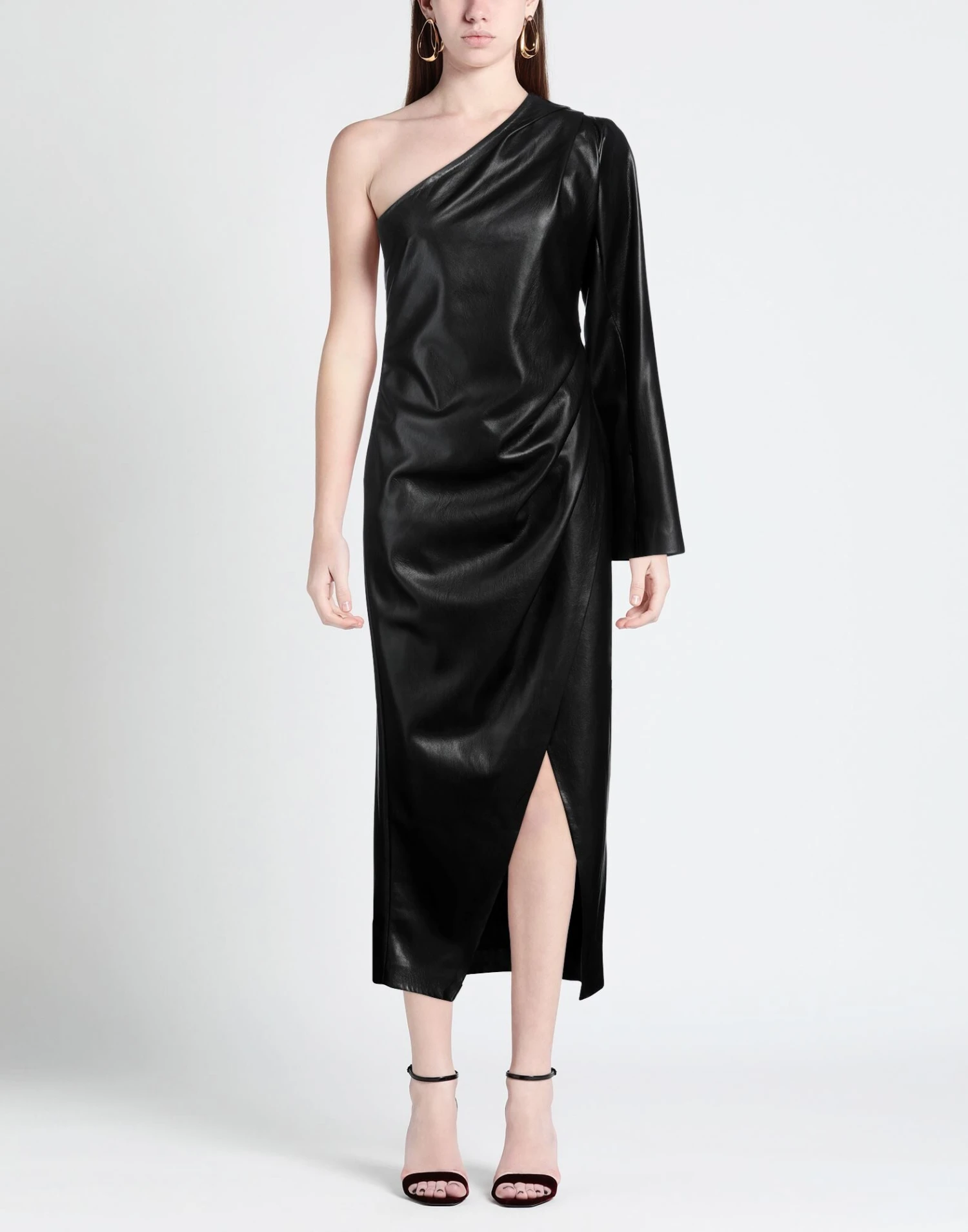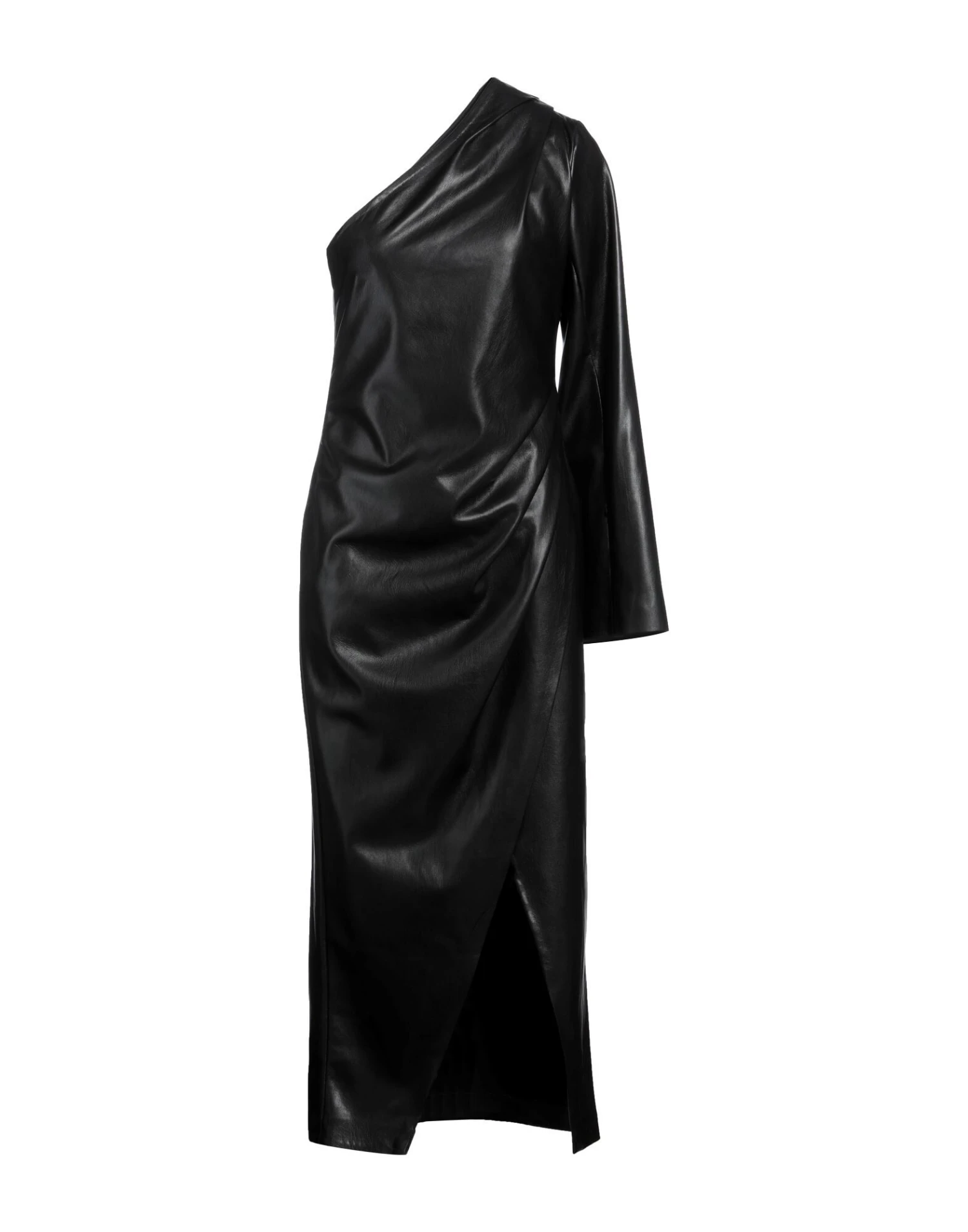 tessuto spalmato, senza applicazioni, tinta unita, collo ampio, monospalla, interno sfoderato, zip, senza tasche, modello a tubino