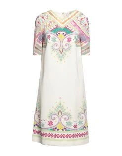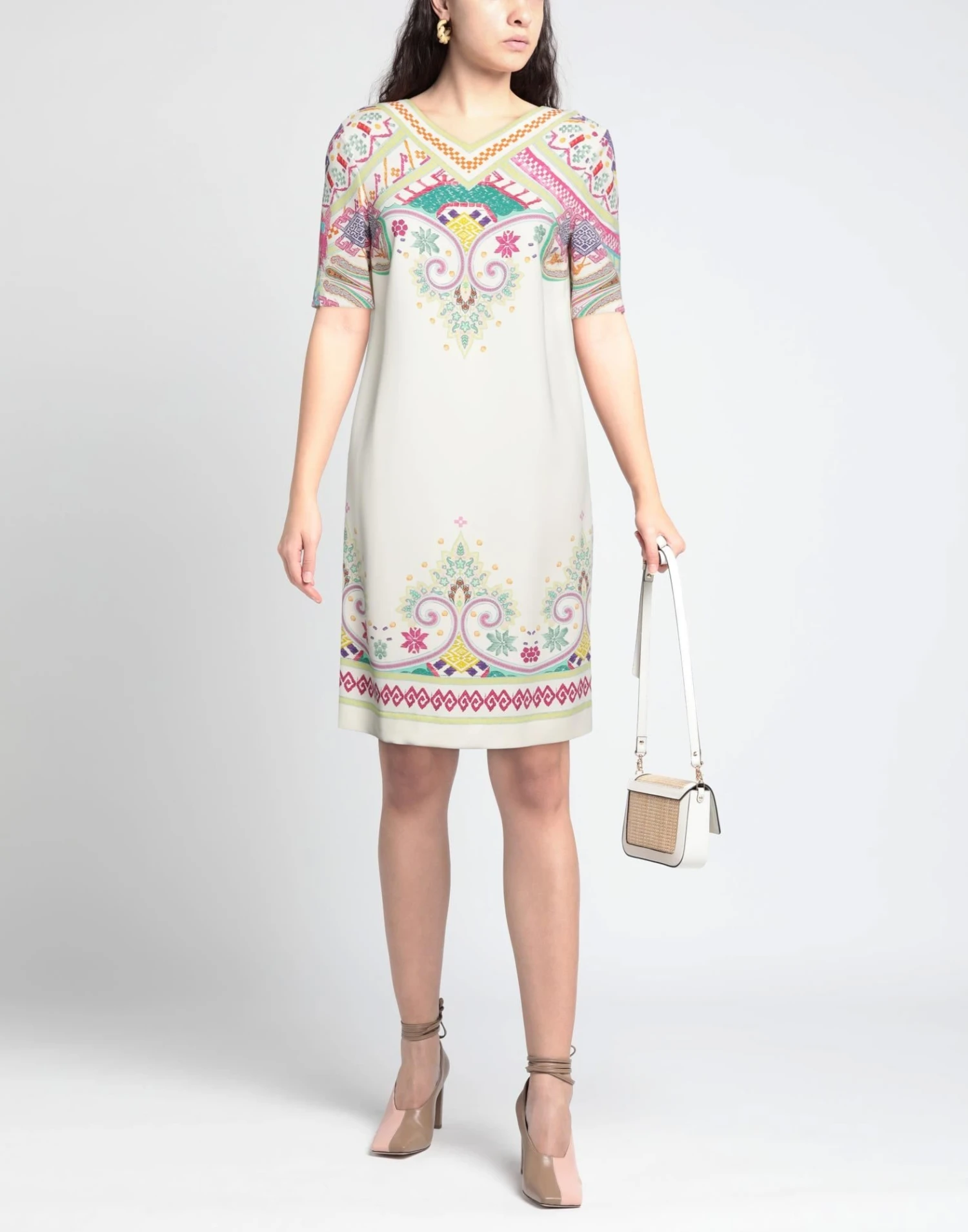 crêpe, senza applicazioni, fantasia cachemire, collo a v, maniche corte, interno sfoderato, zip, gancetti, senza tasche, elasticizzato
