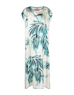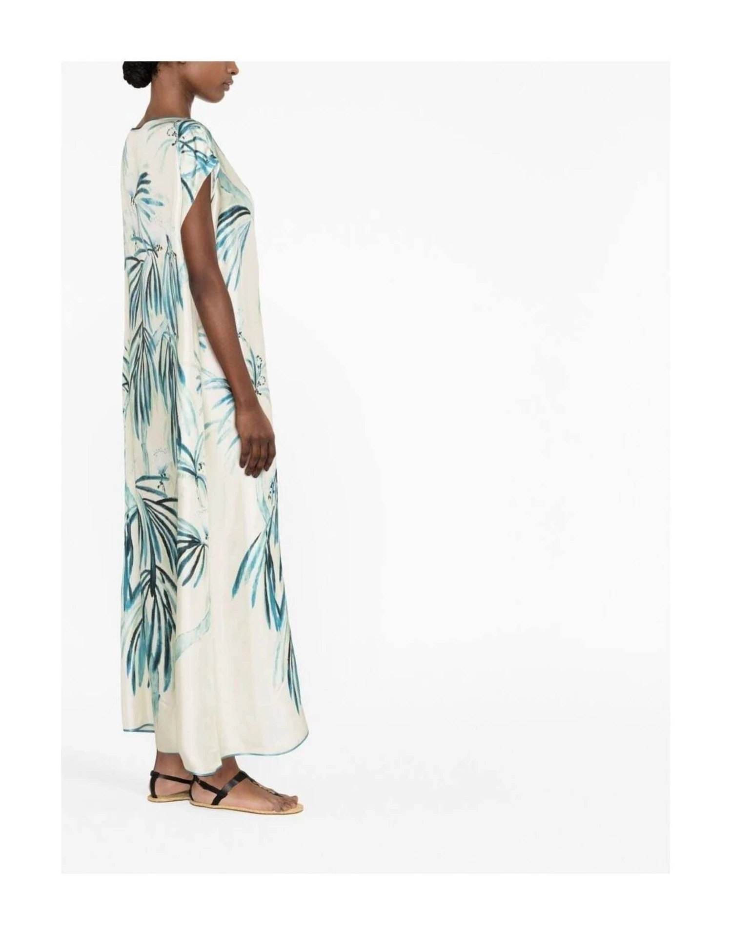 Abito lungo in seta con stampa grafica di F.R.S For Restless Sleepers con bianco, blu, seta, stampa grafica all-over, girocollo, maniche ad aletta e maxi.