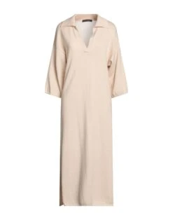 lavorato a maglia, maglia leggera, senza applicazioni, tinta unita, collo a polo, maniche a 3/4, interno sfoderato, senza tasche, spacco laterale, vestito