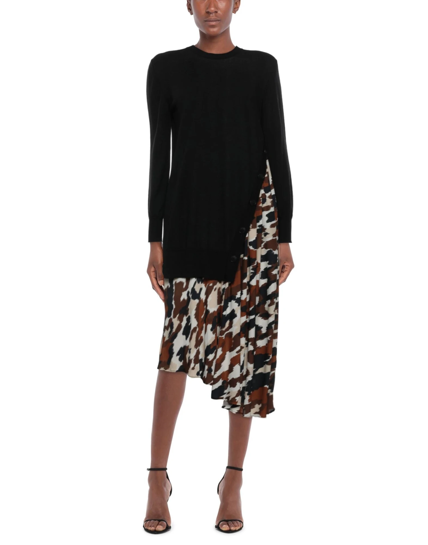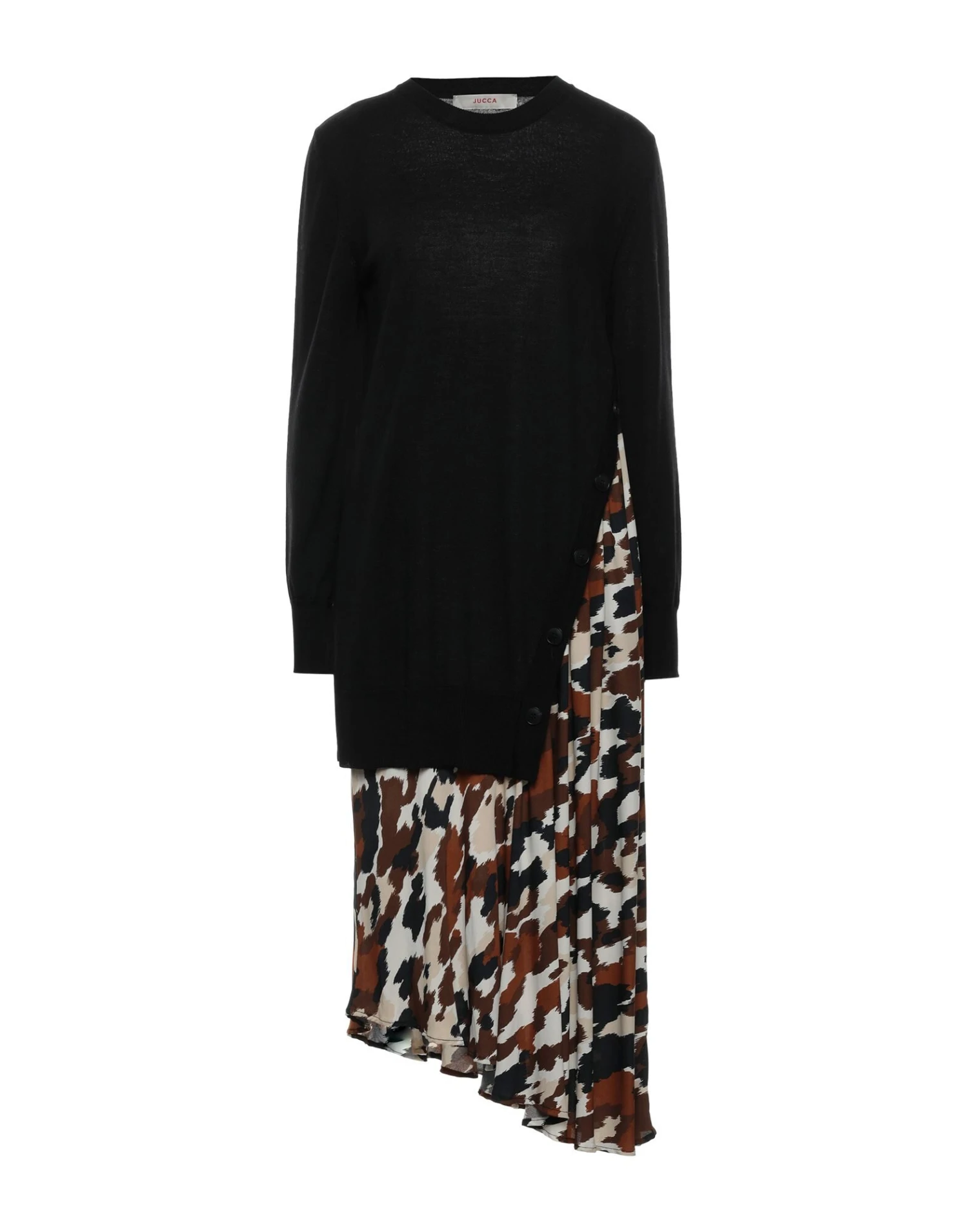 crêpe, lavorato a maglia, senza applicazioni, fantasia multicolore, collo tondo, maniche lunghe, senza tasche, senza chiusura, interno sfoderato