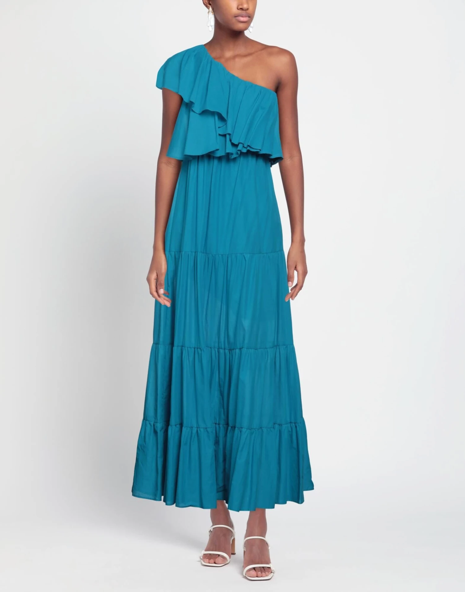 tela, arricciature, tinta unita, collo con scollatura profonda, monospalla, interno parzialmente foderato, senza tasche, vestito
