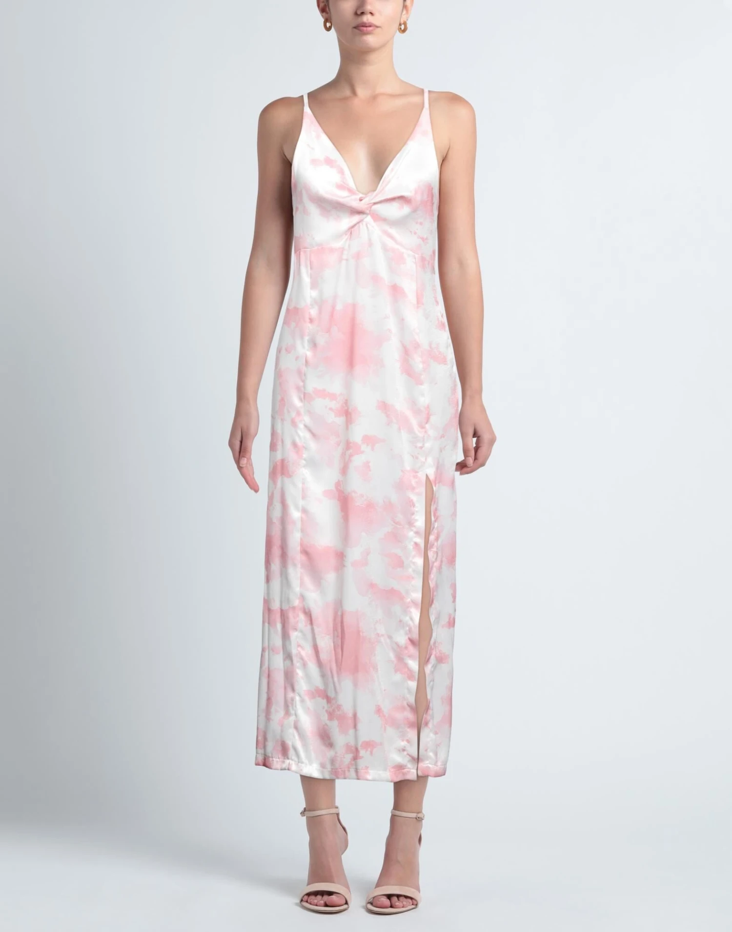 raso, senza applicazioni, fantasia bicolore, collo con scollatura profonda, senza maniche, interno sfoderato, zip, senza tasche, spacco anteriore, modello stile impero