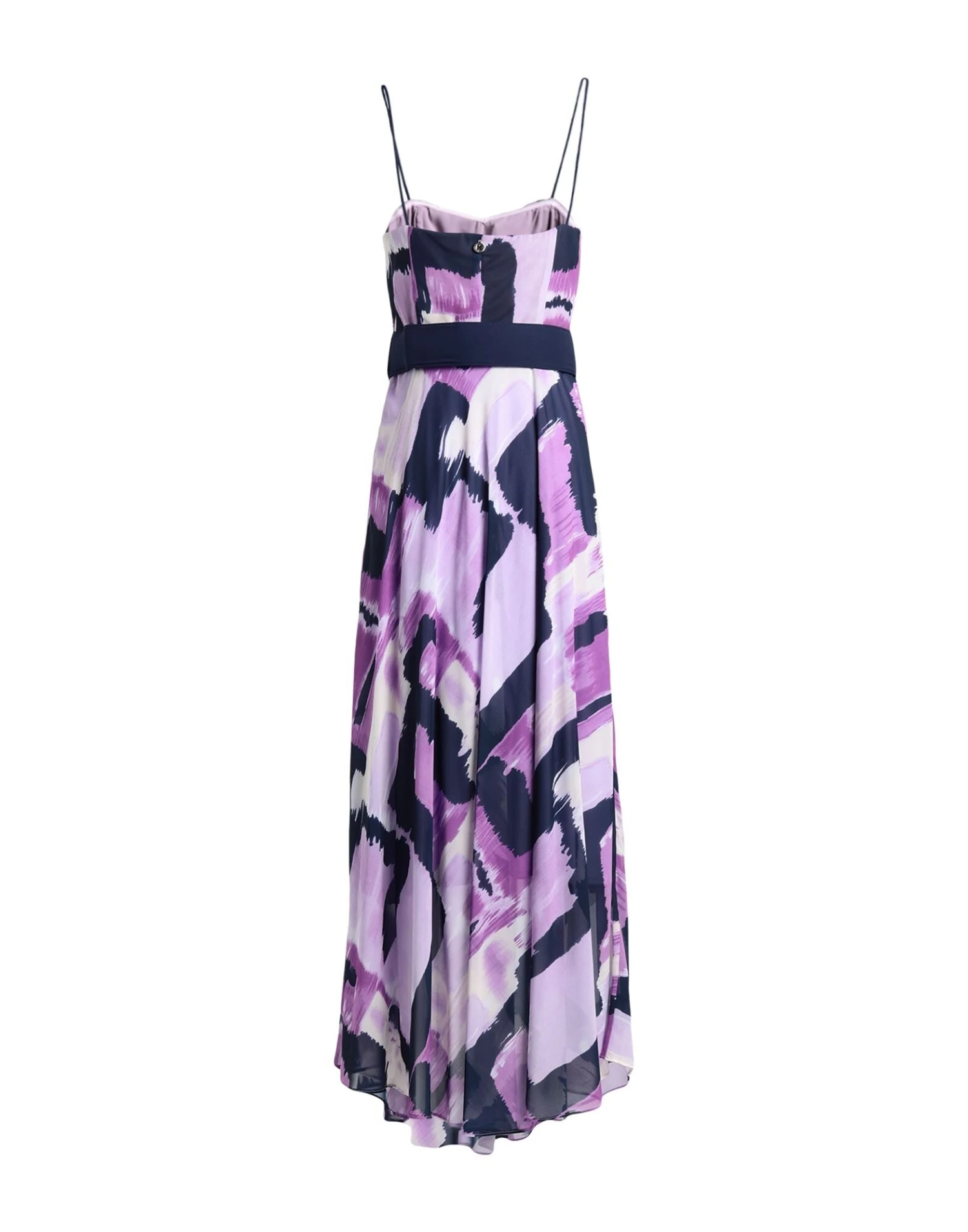 crêpe, cintura, fantasia multicolore, collo con scollatura profonda, senza maniche, interno foderato, zip, senza tasche