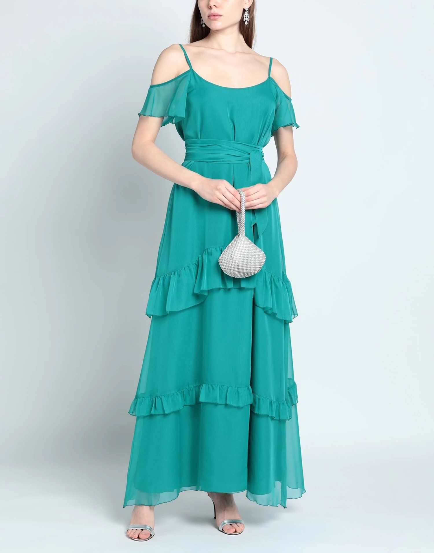 chiffon, balze, fusciacca, tinta unita, collo ampio, maniche corte, interno foderato, senza tasche, modello a trapezio