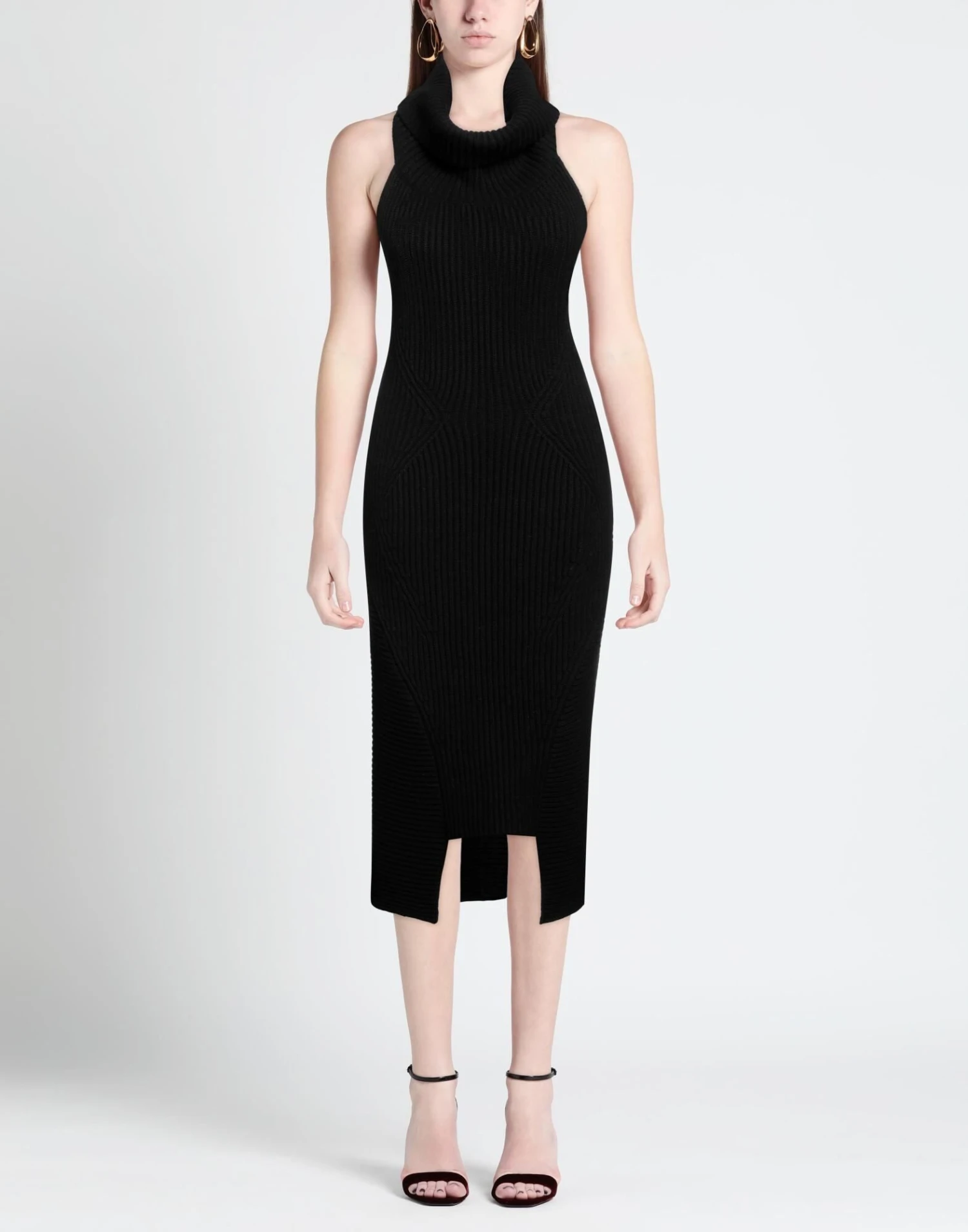 lavorato a maglia, maglia media, senza applicazioni, tinta unita, collo alto, senza maniche, interno sfoderato, senza tasche, modello a tubino