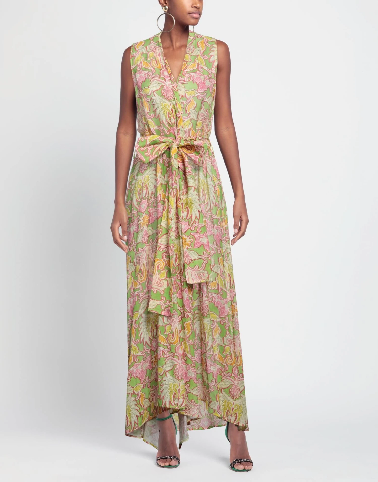 garza, applicazione removibile, fantasia floreale, collo con scollatura profonda, senza maniche, interno sfoderato, senza tasche, modello chemisier