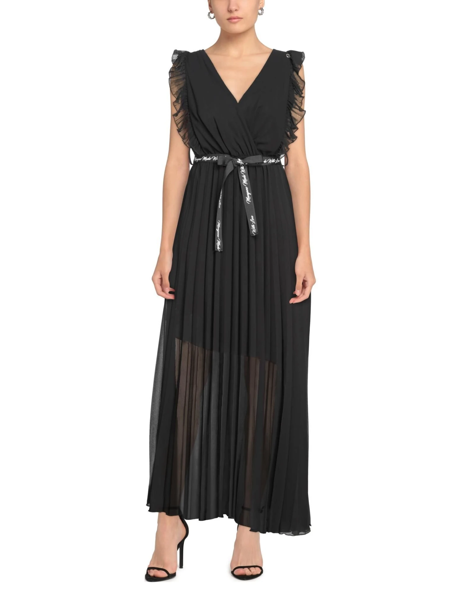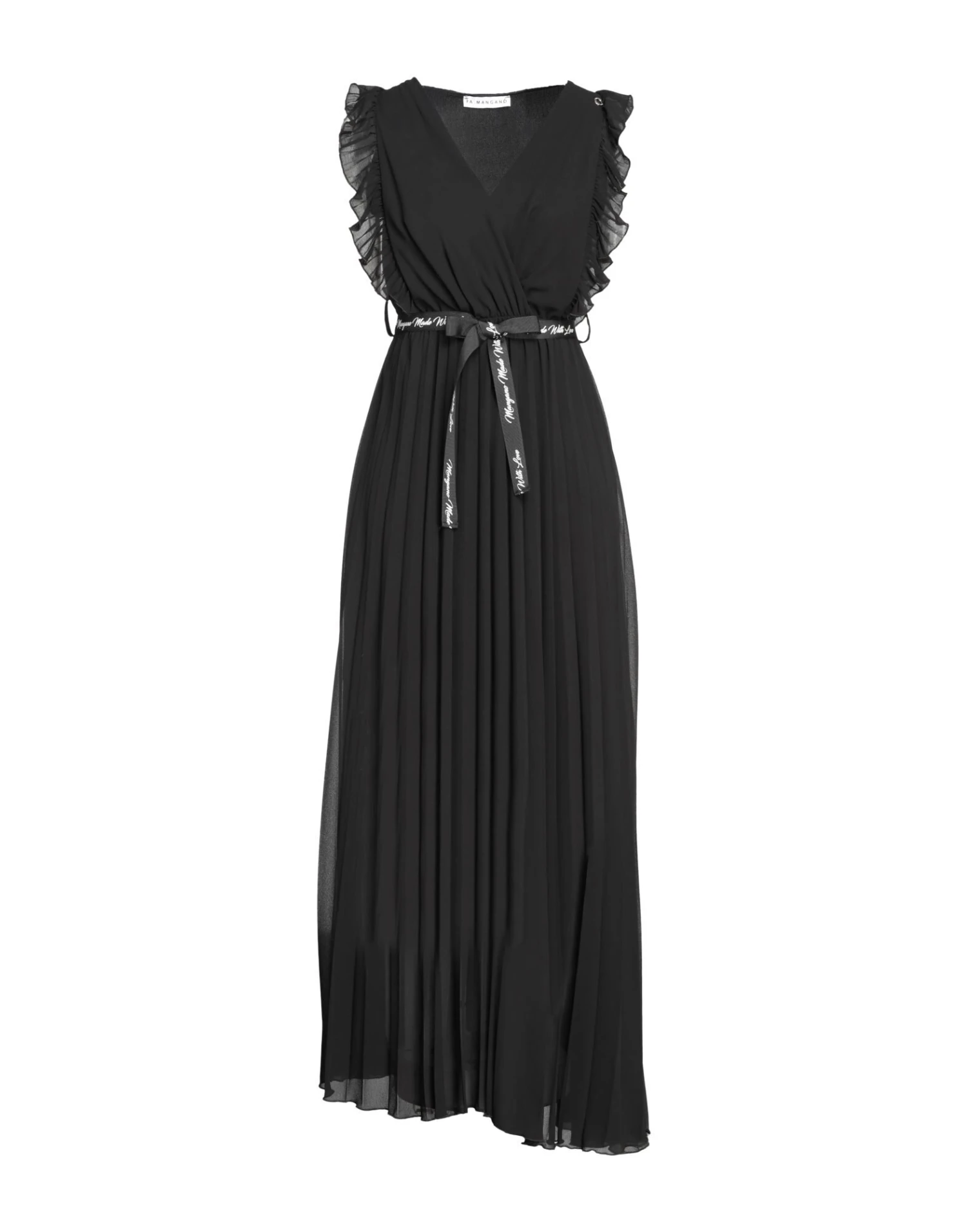 crêpe, cintura, brand logo, tinta unita, collo con scollatura profonda, senza maniche, interno foderato, senza tasche, plissè, elasticizzato, modello stile impero