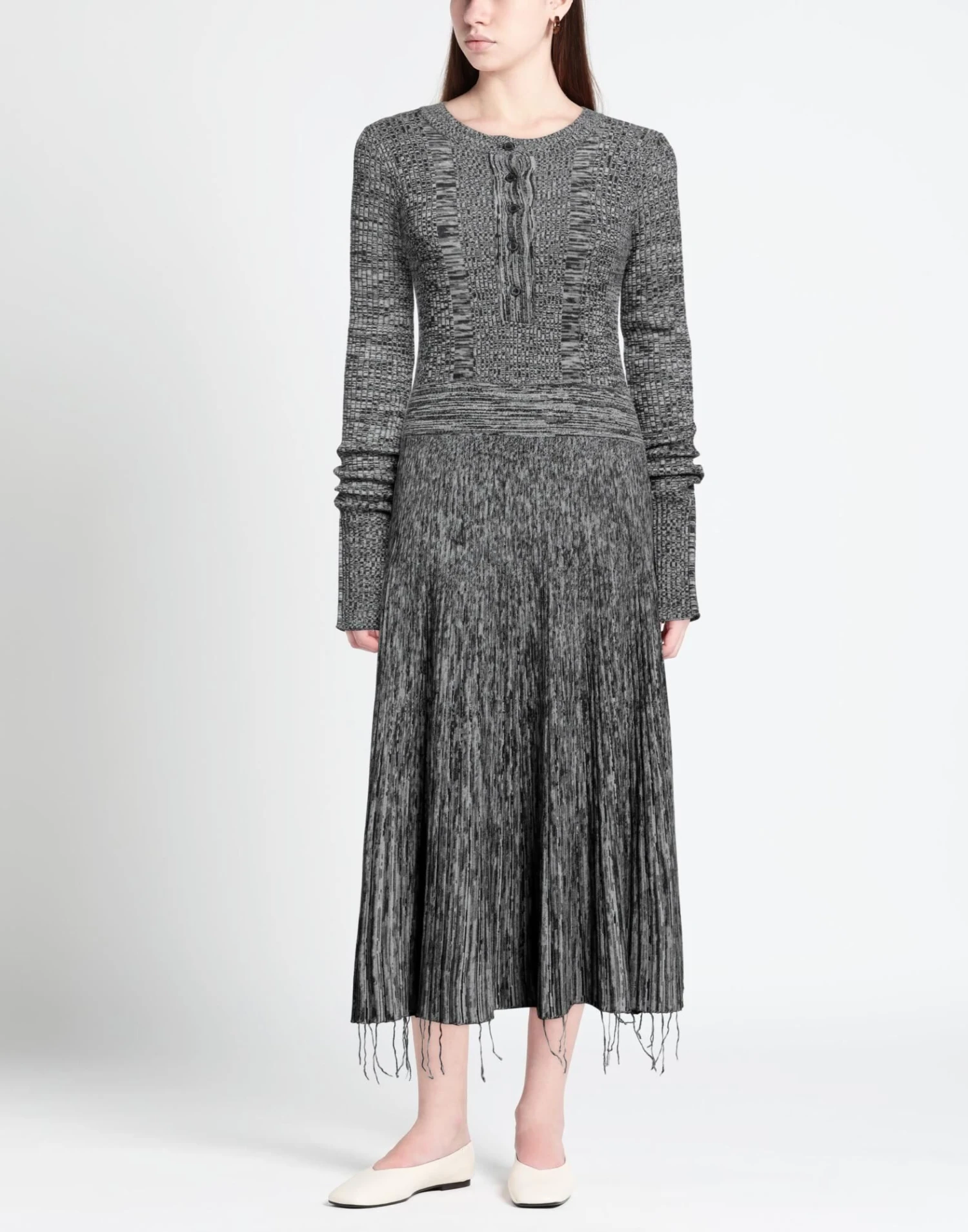 lavorato a maglia, effetto melange, maglia leggera, senza applicazioni, fantasia bicolore, collo tondo, maniche lunghe, interno sfoderato, senza tasche, modello a trapezio