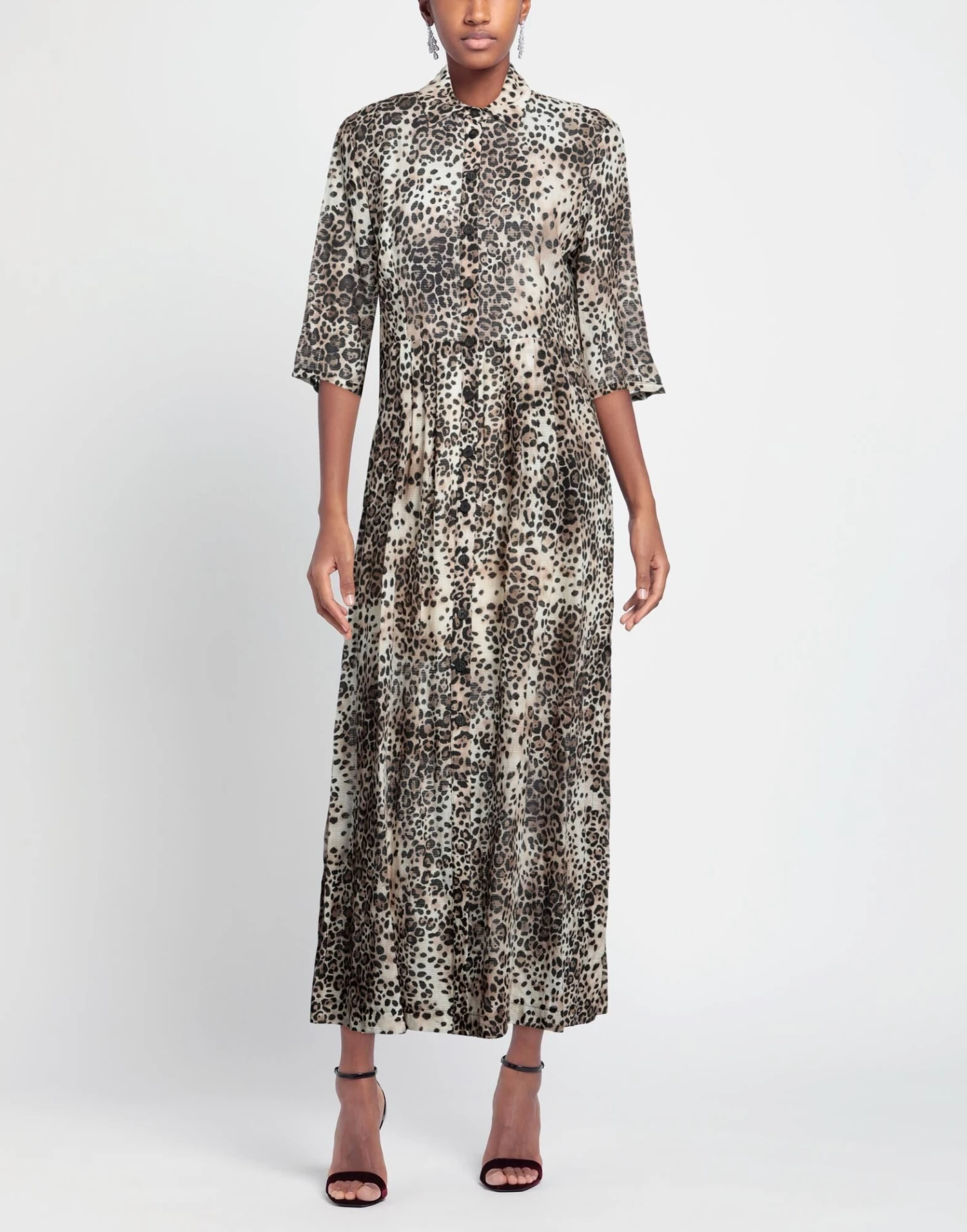tela, senza applicazioni, fantasia leopardata, collo classico, maniche corte, interno foderato, bottoni, multitasche, modello chemisier