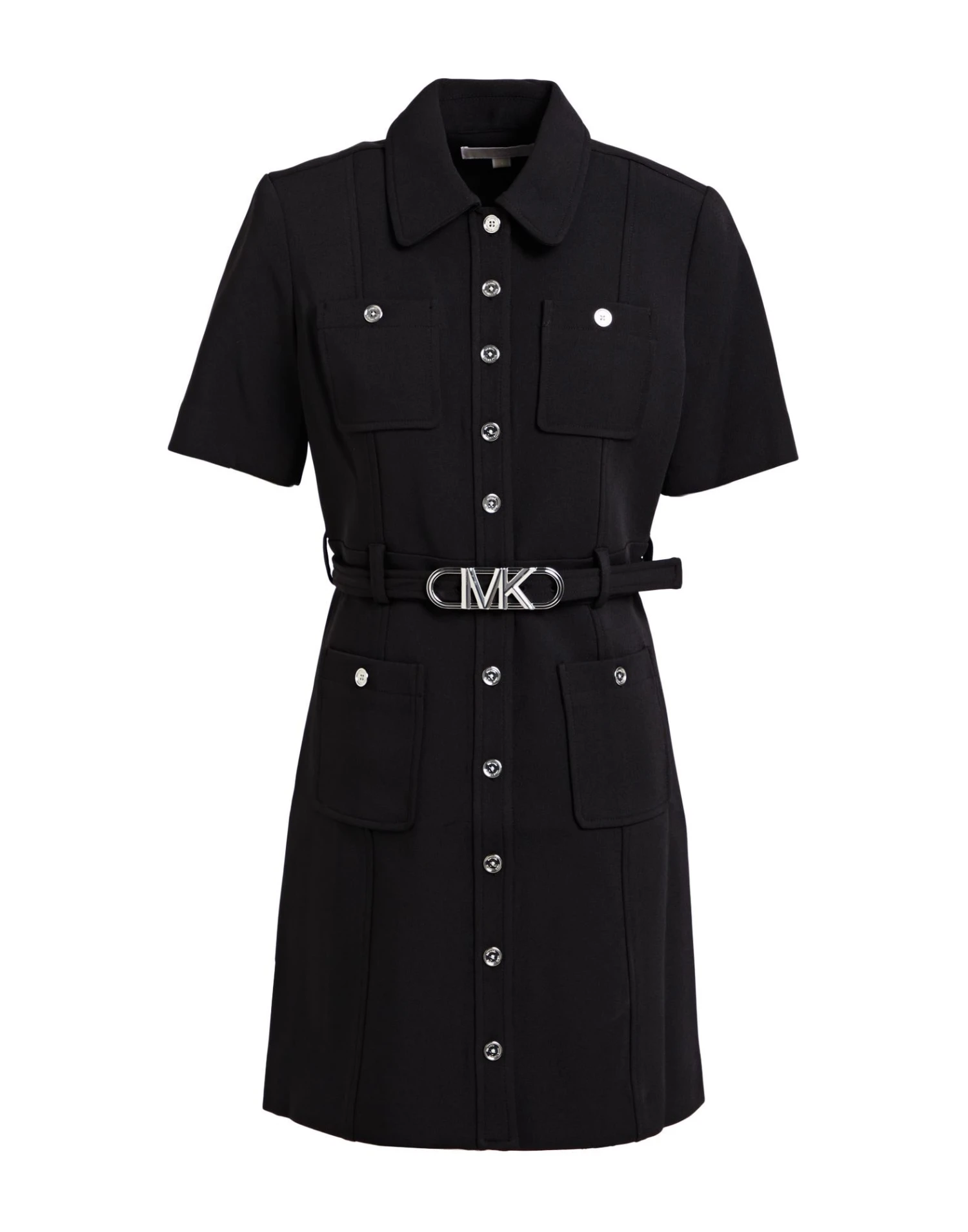 crêpe, brand logo, cintura, tinta unita, collo classico, maniche corte, interno foderato, bottoni, multitasche, modello chemisier