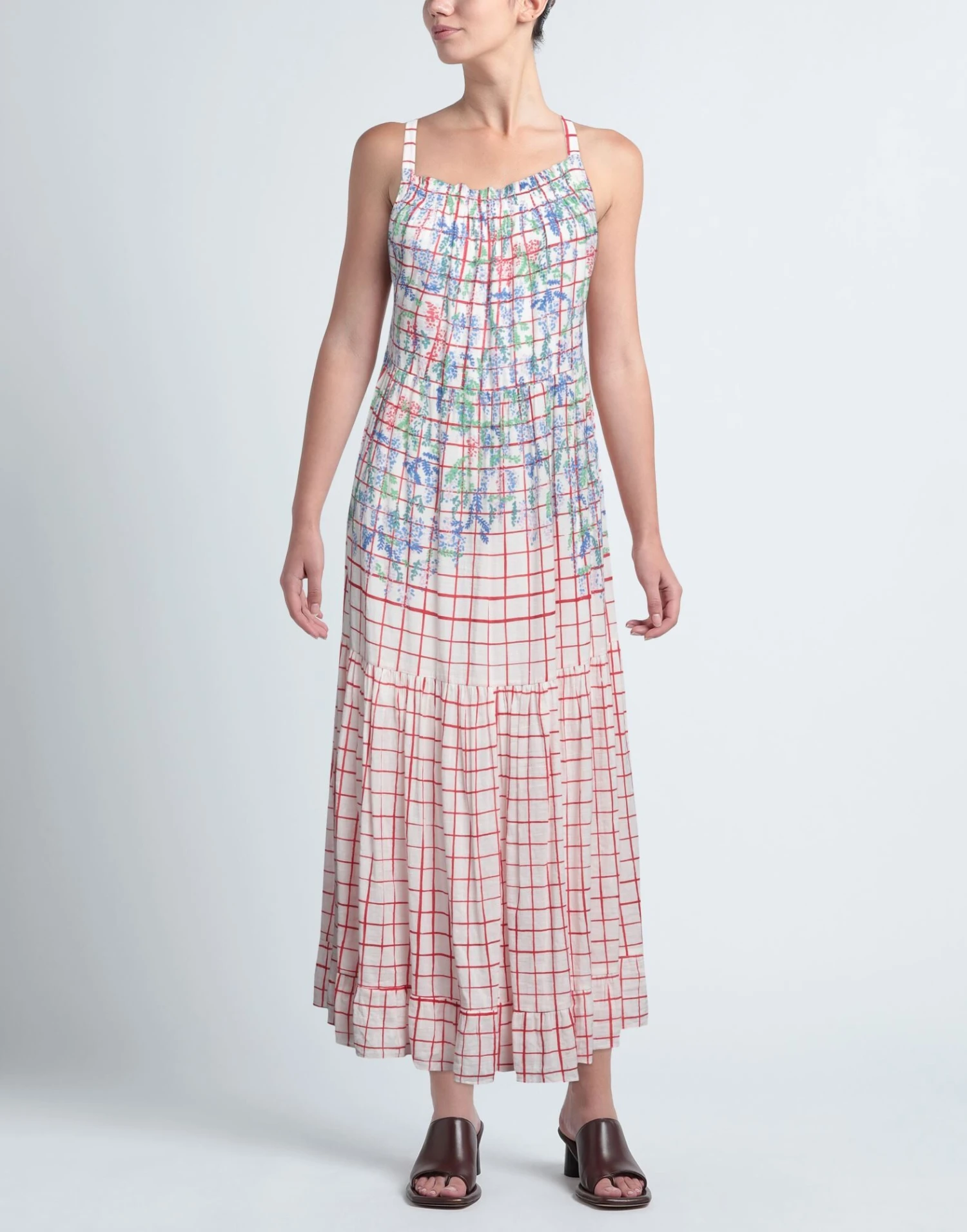 tela, senza applicazioni, a quadri, collo ampio, senza maniche, interno foderato, senza tasche, vestito