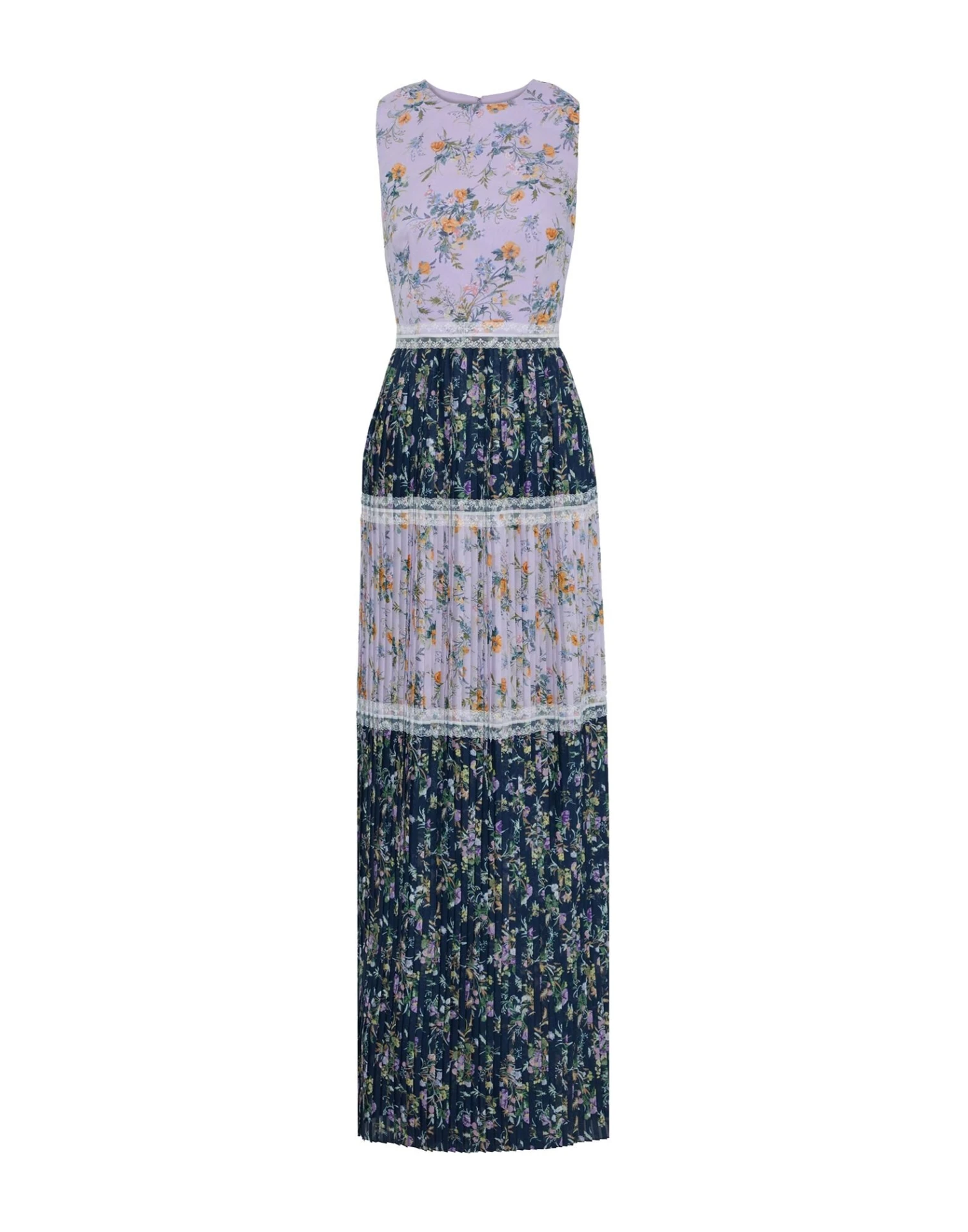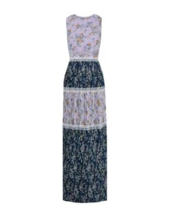 crêpe, pizzo, senza applicazioni, fantasia floreale, con pettorina, senza maniche, interno foderato, zip, senza tasche, modello stile impero