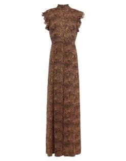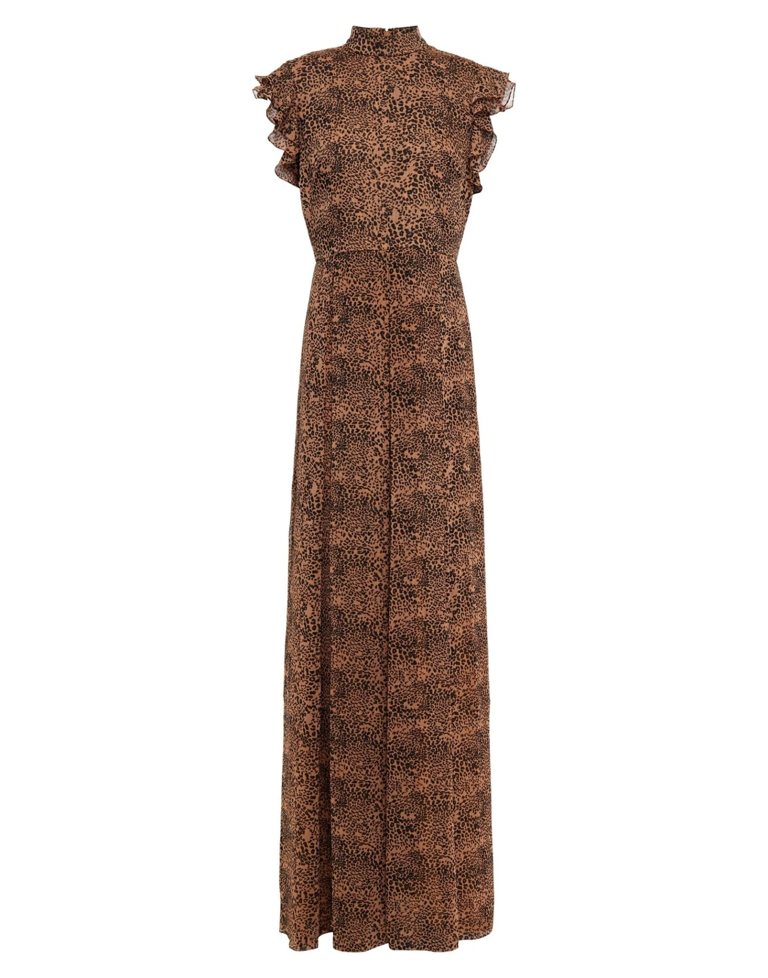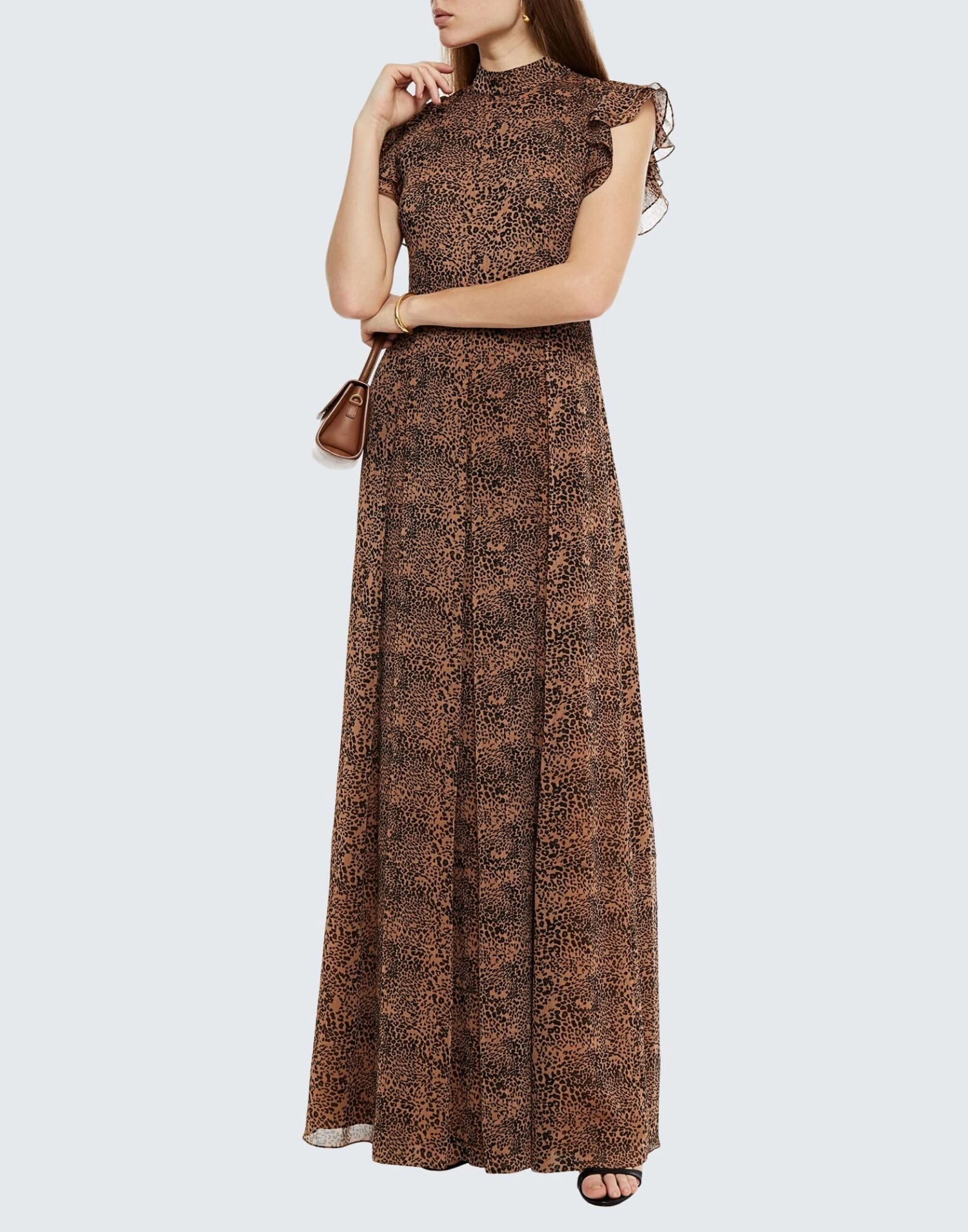 chiffon, senza applicazioni, fantasia leopardata, collo alto, maniche corte, maniche ad aletta, interno foderato, zip, gancetti, senza tasche, modello a trapezio