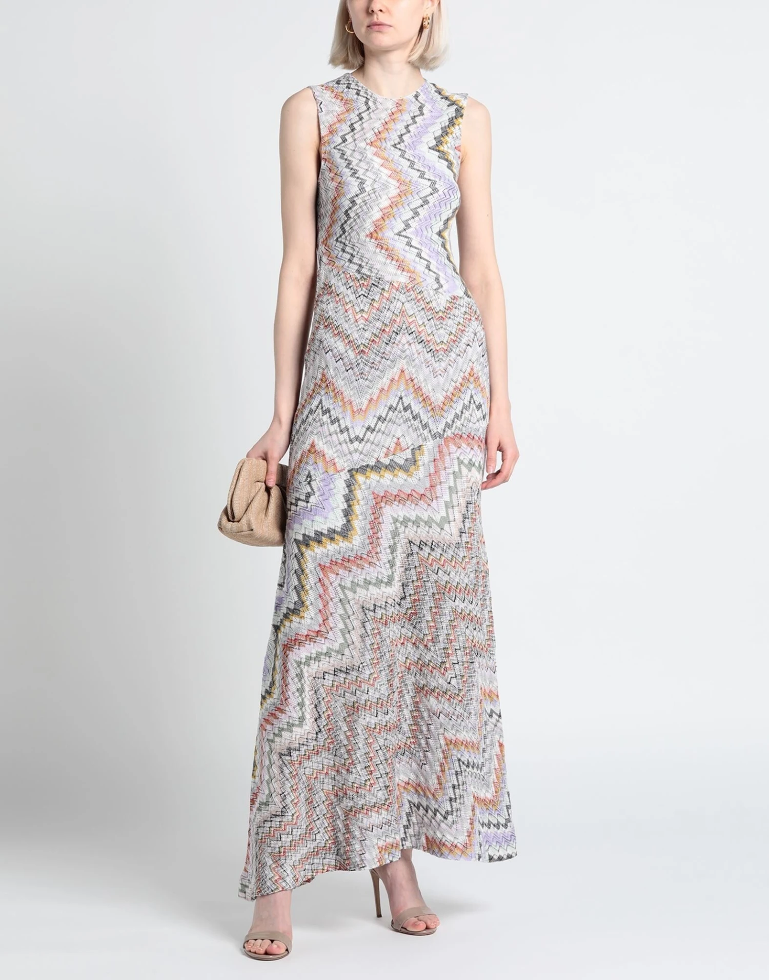 lavorato a maglia, maglia leggera, senza applicazioni, fantasia multicolore, collo tondo, senza maniche, sottoveste interna, senza tasche, modello a trapezio