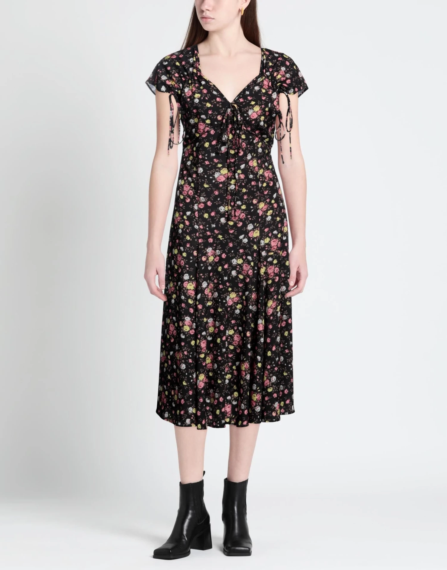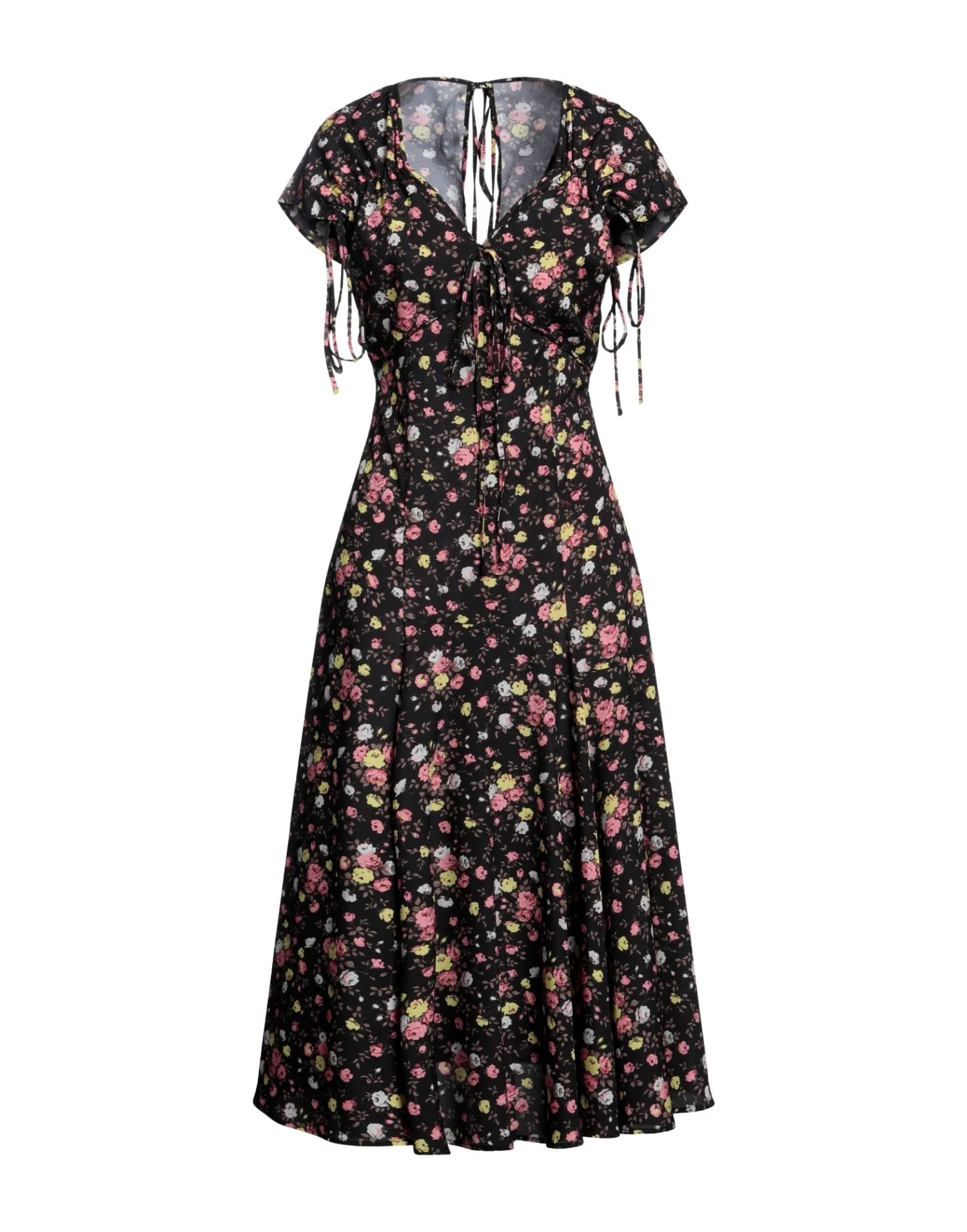 Crêpe, Lacci, Collo a v, Maniche corte, Fantasia floreale