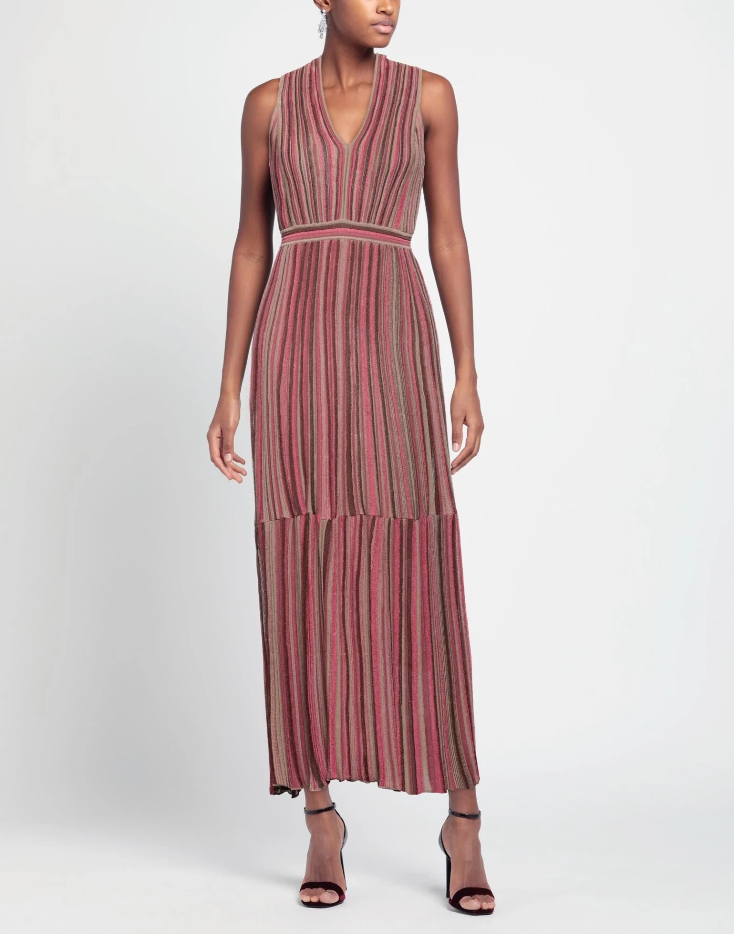 lavorato a maglia, lamè, maglia leggera, senza applicazioni, a righe, collo a v, senza maniche, interno foderato, senza tasche, modello a ruota