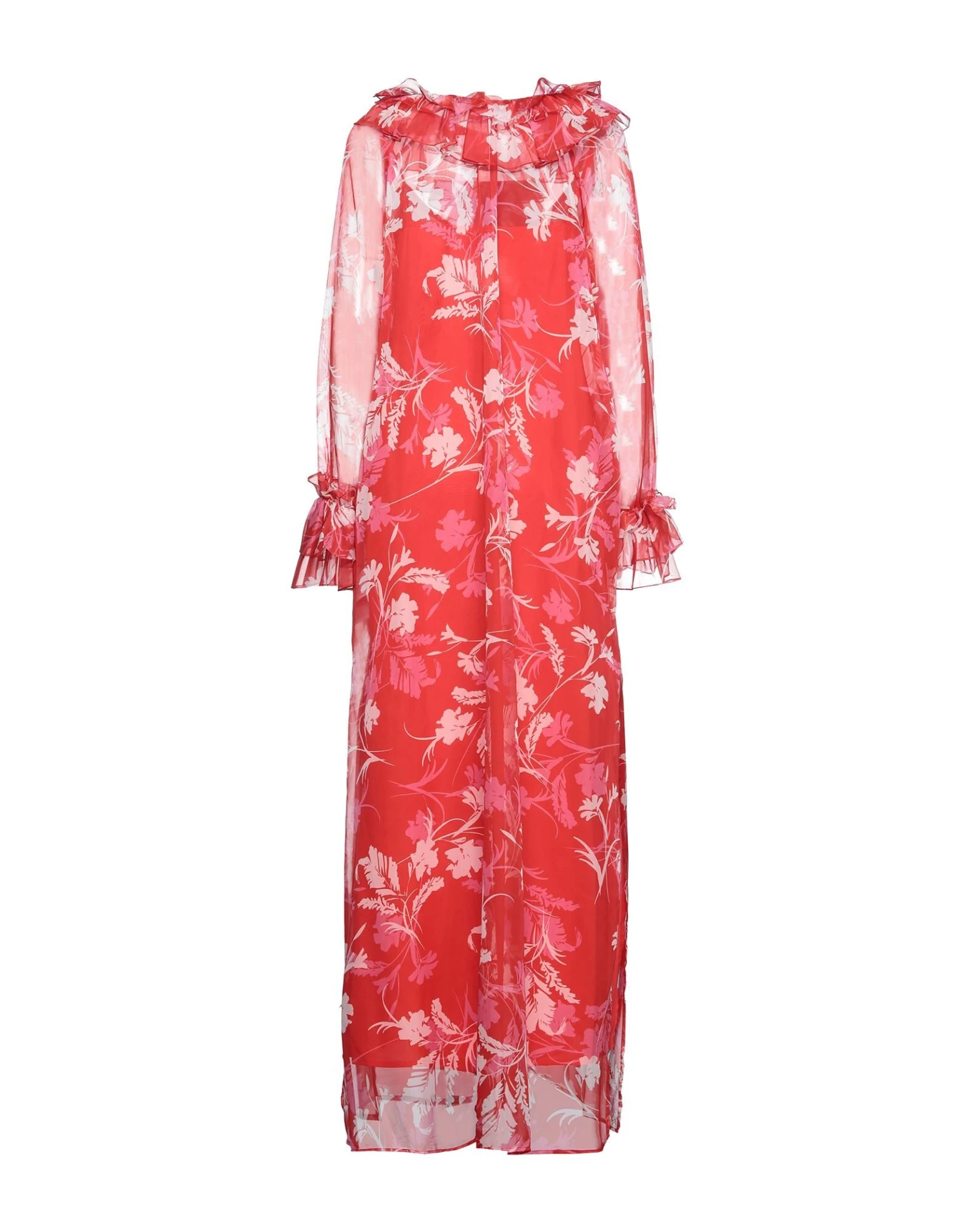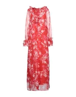 chiffon, laccetti, ruches, fantasia floreale, collo tondo, maniche lunghe, senza tasche, sottoveste interna