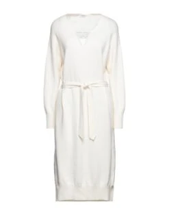 lavorato a maglia, maglia media, cintura, applicazioni in metallo, tinta unita con applicazioni, collo a v, maniche lunghe, interno sfoderato, senza tasche, fondo con spacchetti laterali, vestito
