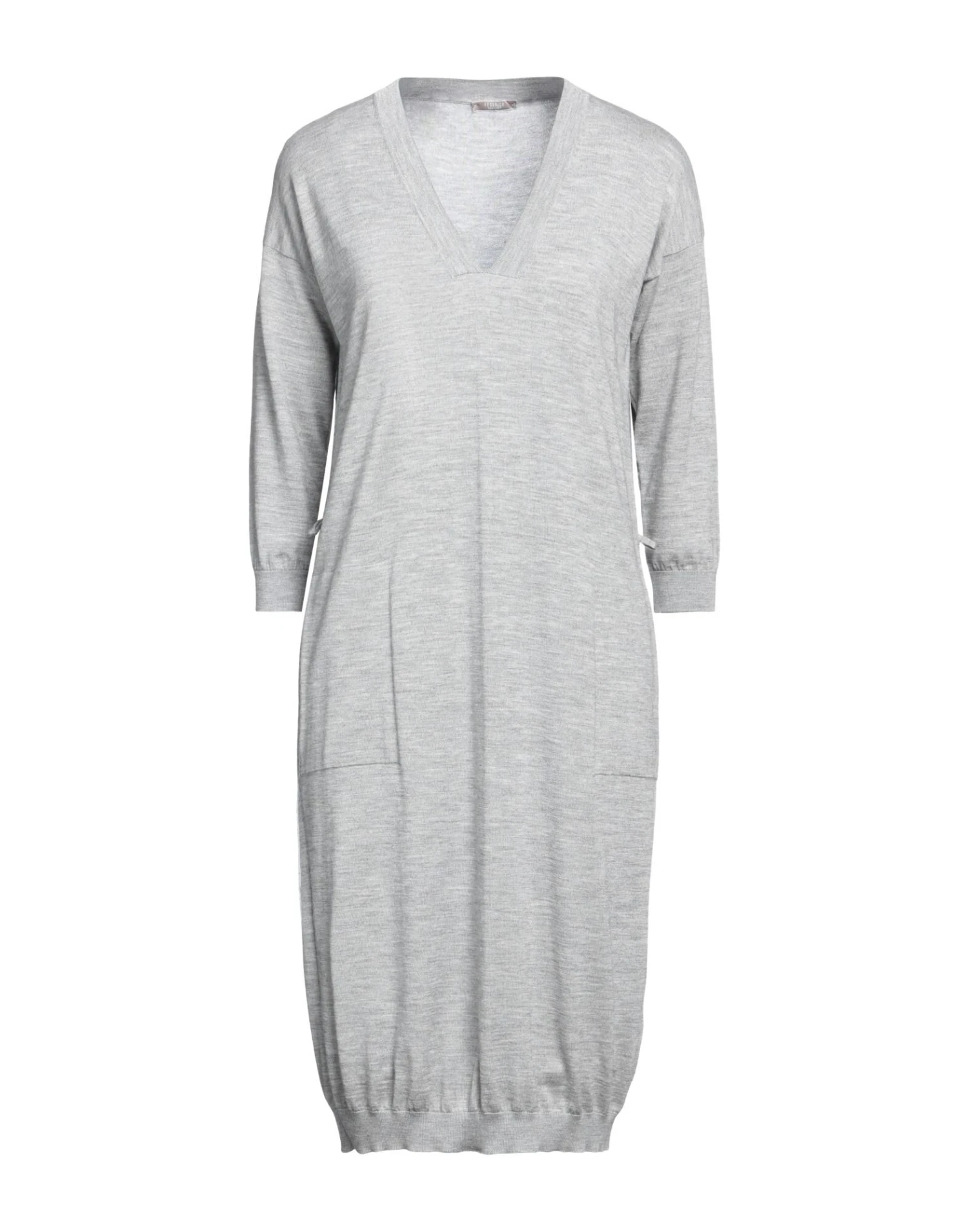 lavorato a maglia, lamè, effetto melange, maglia leggera, senza applicazioni, tinta unita, collo a v, maniche a 3/4, interno sfoderato, multitasche, modello a tubino