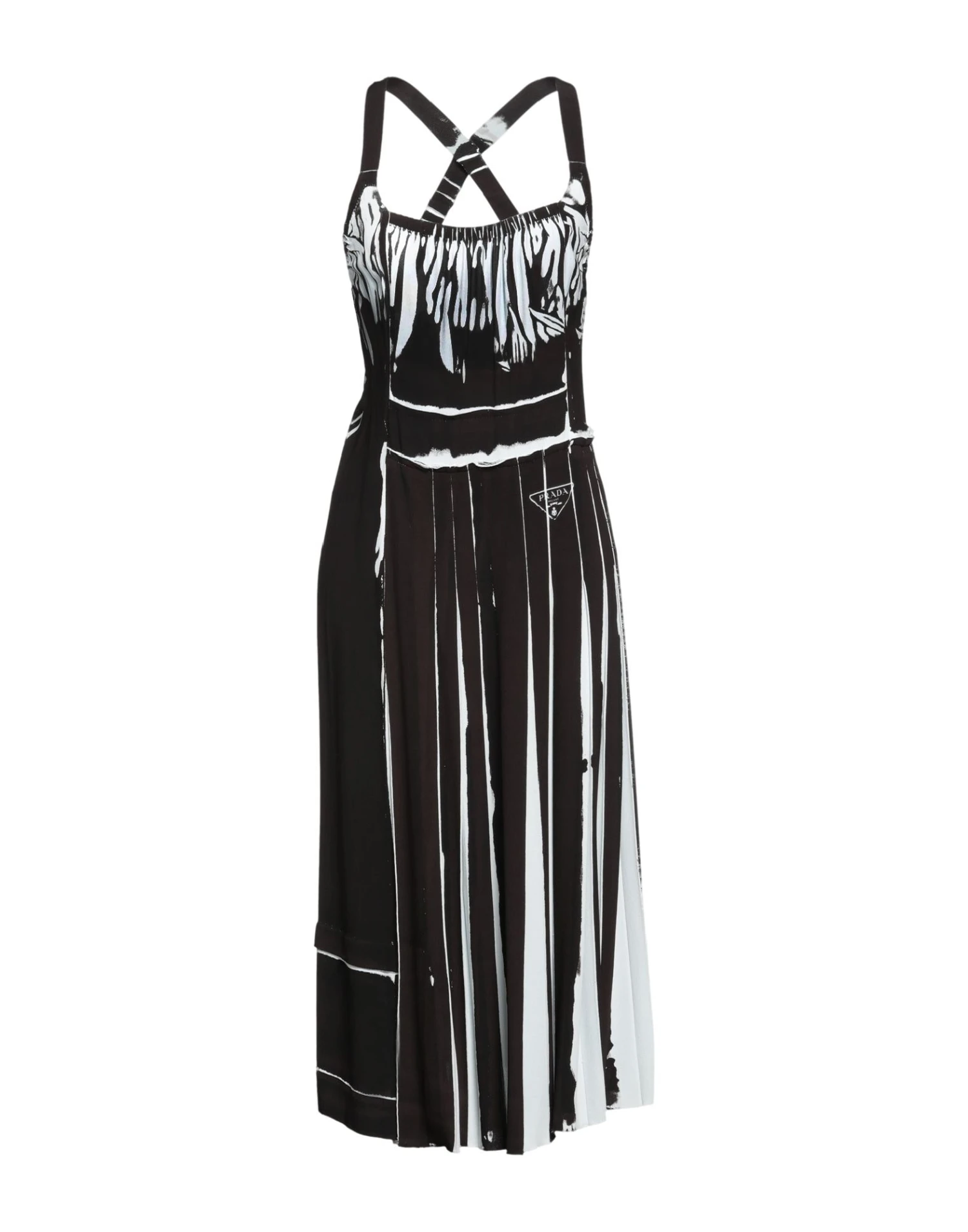 crêpe, pieghe, brand logo, fantasia bicolore, collo ampio, senza maniche, interno sfoderato, senza tasche, automatici, modello a trapezio