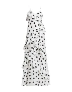 tela, ruches, a pois, collo con scollatura profonda, senza maniche, interno foderato, zip, senza tasche, modello a trapezio