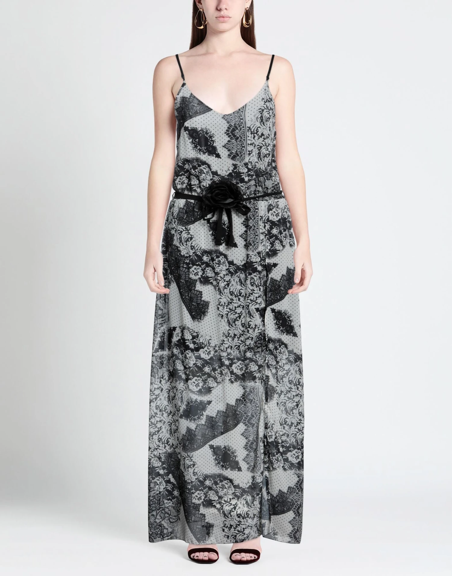 crêpe, cintura, fiore applicato, fantasia multicolore, collo ampio, senza maniche, interno foderato, modello stile impero