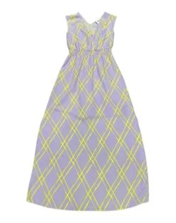 Silvian Heach GPP23370VE Long Lilac Dress with Yellow Diamond Print. V-neck, Elastic Waist.