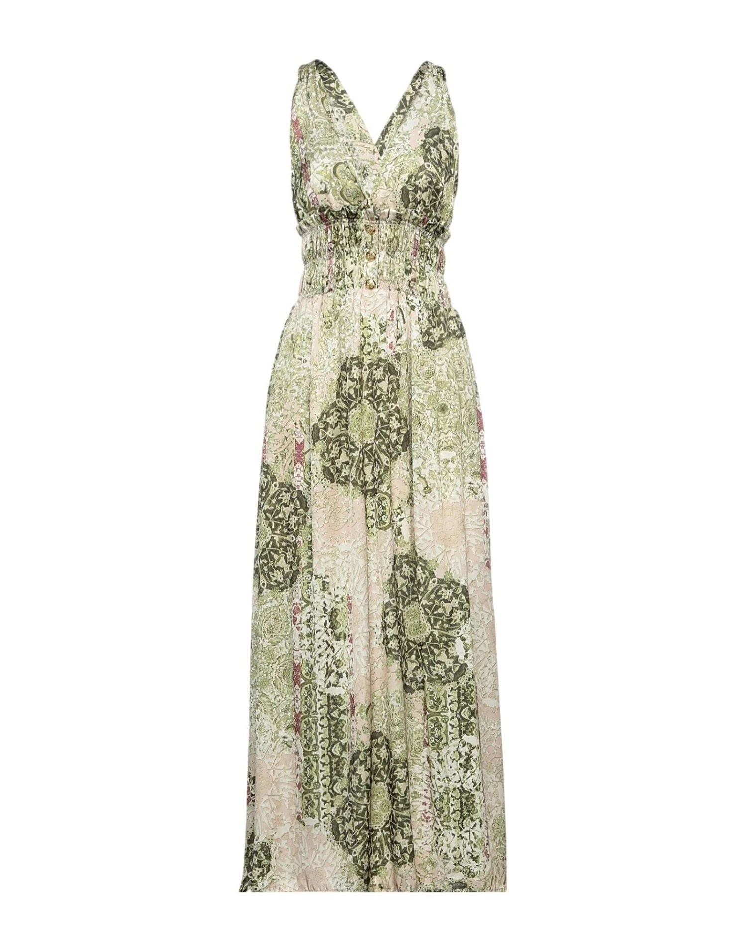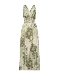 raso, arricciature, brand logo, fantasia floreale, collo con scollatura profonda, senza maniche, chiusura con elastico, senza tasche, interno foderato